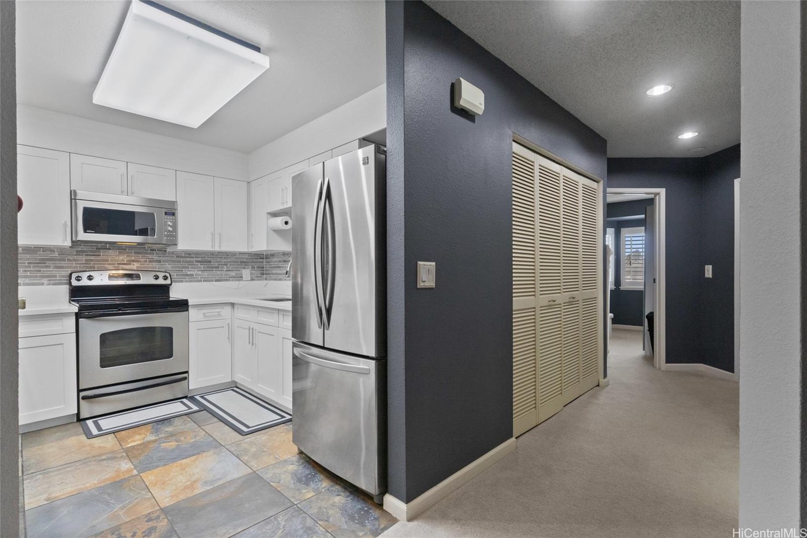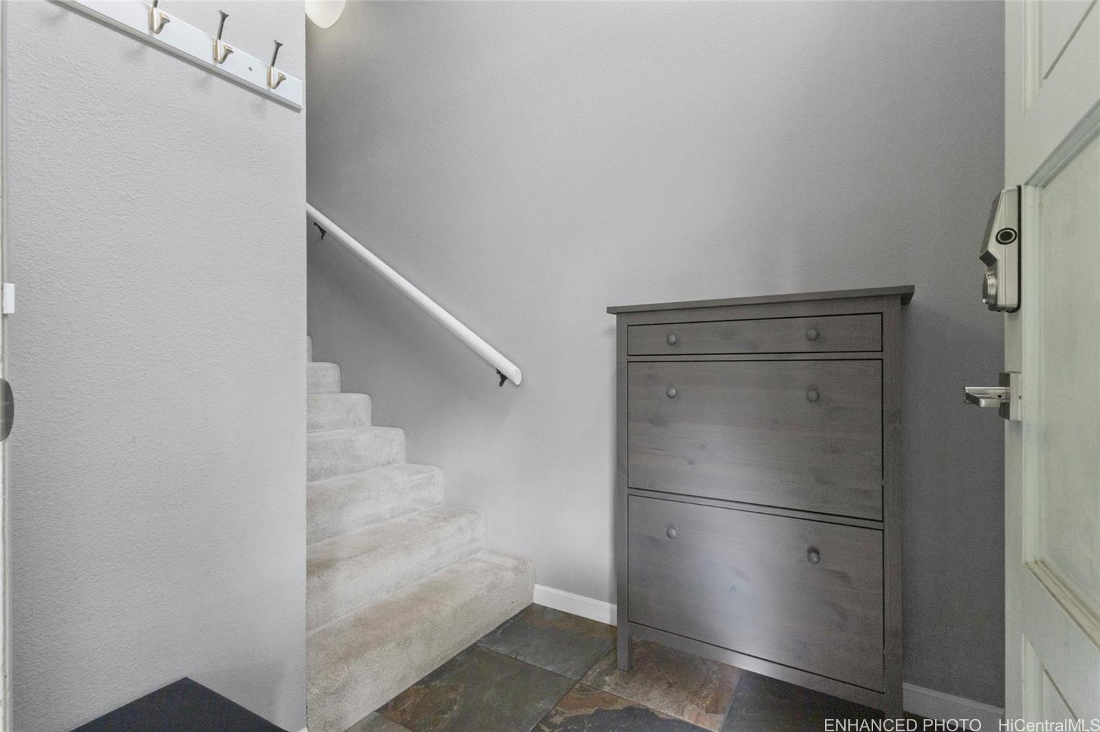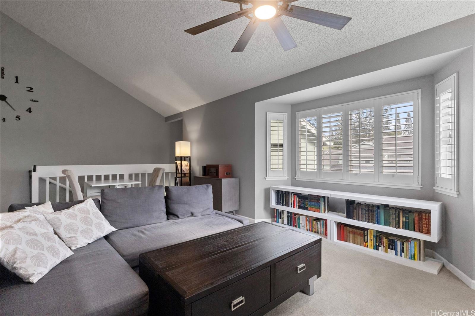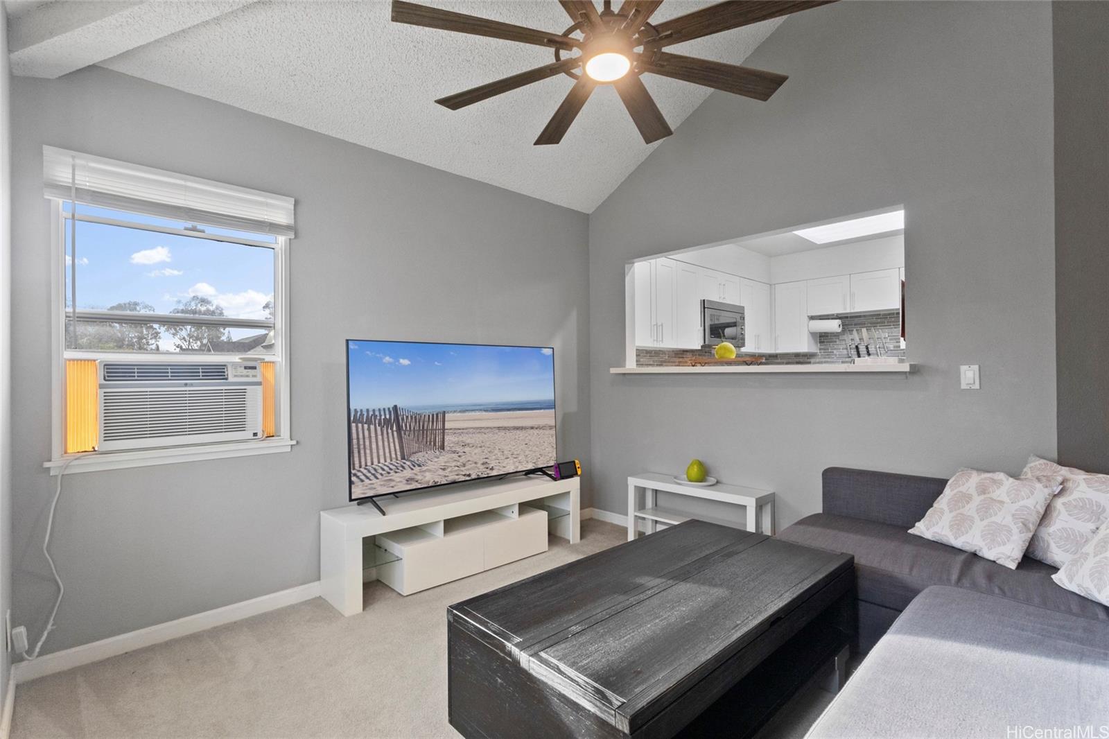 Welcome to your home in Mililani Mauka! This well-maintained townhome in Kumelewai Court is pet friendly & offers a rare opportunity of a spacious two-bedrooms & one-bath in a community known for family-friendly amenities and convenience. This unit is located right at the top of the steps, which means you don’t have any neighbors above you — just extra privacy and high vaulted ceilings. With two assigned parking stalls (one covered) & vaulted ceilings creating an open feeling. This unit has been tastefully updated kitchen & bathroom plus lovely plantation shutters in each window. Whether you are a first-time buyer, downsizing, or