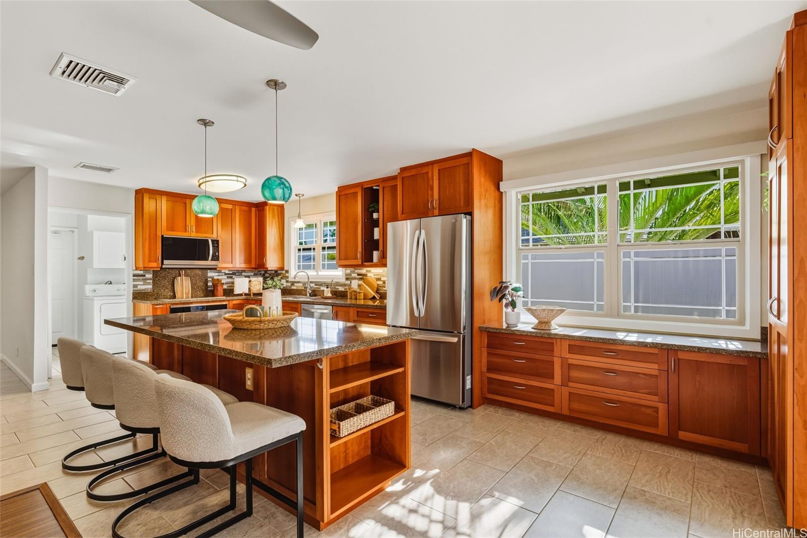 快適さ、温かさ、そしてカイルアらしい暮らしが真に融合した場所へようこそ。カイルアで愛されているカオパ地区に佇むこの4ベッドルーム、2バスルームの住宅は、約6,000平方フィートの広々とした敷地に、約2,000平方フィートの居心地の良い室内空間を提供しています。涼しいセントラルエアコンと豊かな自然光が、くつろぎと居心地の良い空間を演出します。室内には、プレイスペース、メディアルーム、あるいは人々が集まる居心地の良い隠れ家など、あらゆるご家庭に喜ばれる柔軟性を提供する2つ目のファミリールームがあります。屋根付きのベランダは、週末の朝や夕食、あるいはただ風を感じるのに最適です。完全にフェンスで囲まれた庭はプライバシーを確保し、遊び、ガーデニング、リラックスするのに最適な空間です。太陽光発電システムを備え、細部までこだわったこの住宅は、美しい暮らしと長期的な安心感の両方を提供します。学校、食料品店、カイルアの人気レストランからわずか数分の距離に位置し、毎日の利便性をすぐそばで提供します。