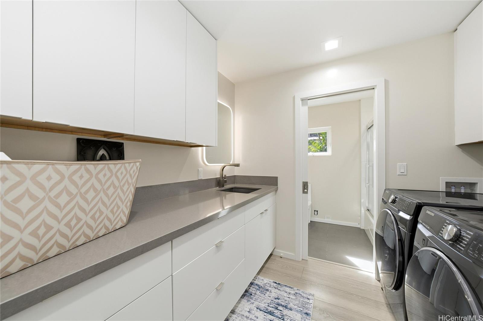 美しく改装された東オアフのタウンハウスに今すぐお住まいください。ビーチ、公園、そして生活の利便性へも徒歩圏内という絶好のロケーションです。モダンな快適さを随所に取り入れたこの住宅は、スプリットエアコン、二重窓、特注のビルトイン、そして幅広の硬質フローリングを完備。キッチンはまさに目玉で、豊富なコントラストのキャビネット、電子レンジ付きコンベクションウォールオーブン、ワインセラー、集いの場に最適な大型アイランドキッチン、そしてカウンターから天井まで続く印象的なタイル張りのバックスプラッシュが魅力です。改装された主寝室には、広々とした特注ウォークインクローゼットと、思慮深く設計された専用バスルームが備わり、静かな隠れ家のような空間を演出しています。多目的に使えるセカンドベッドルームは、ホームオフィス、ゲストルーム、あるいはビルトインのマーフィーベッドと一体型のキャビネットを備え、あなたのライフスタイルに合わせて自在にアレンジできます。百聞は一見に如かず。