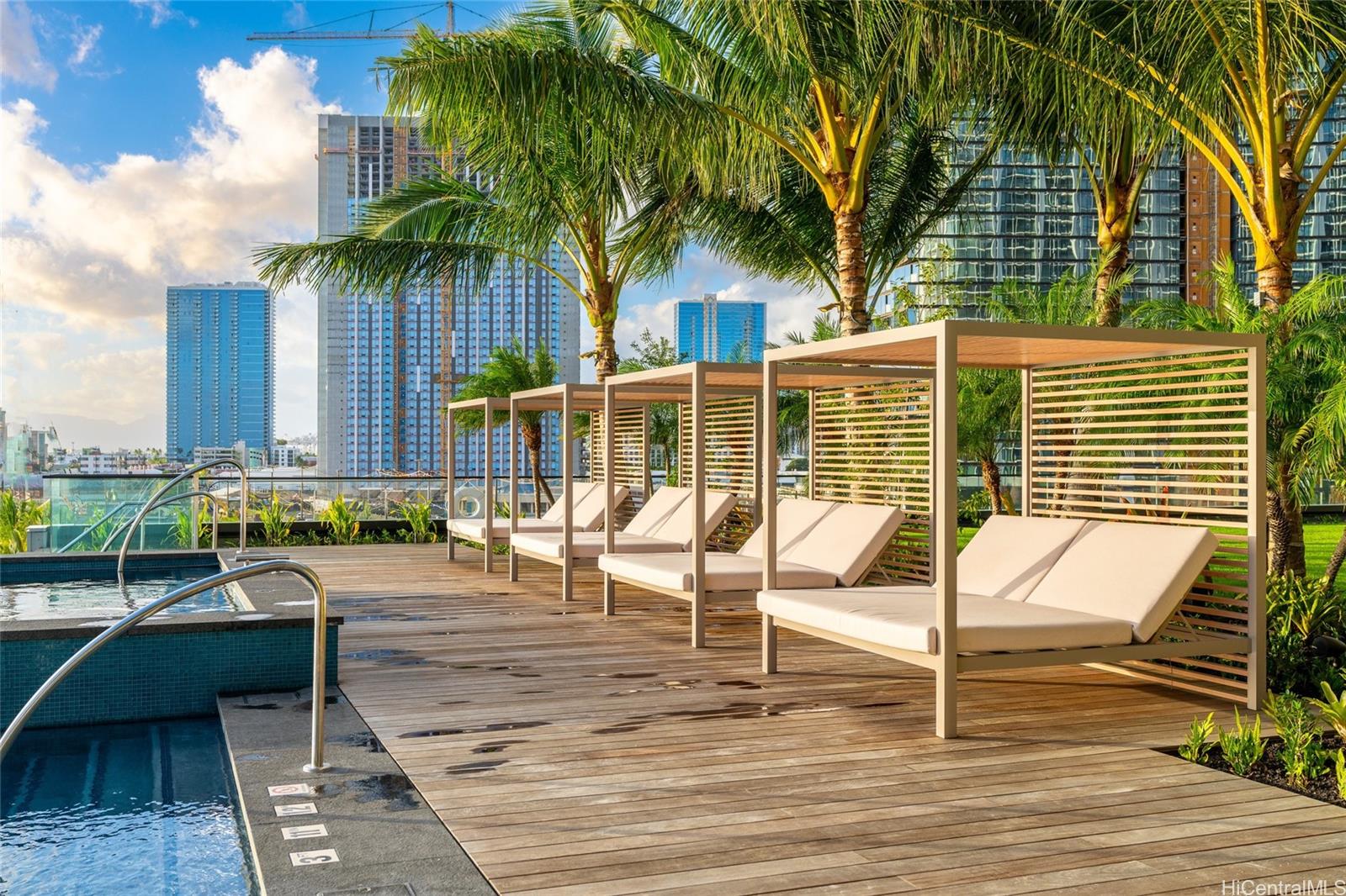 Discover elevated island living at Victoria Place, Ward Village’s newest statement in refined luxury. This impeccably designed 1-bed, 1-bath residence offers 798 sq. ft. of sophisticated comfort, highlighted by 9-foot ceilings and expansive glass walls framing stunning ocean, mountain, harbor, city, and sunset views. Upgrades include motorized living room shades and bedroom manual shades. The open layout flows effortlessly, complemented by a gourmet kitchen with Studio Becker cabinetry and premium integrated appliances. Set along Kakaako’s prestigious front row, Victoria Place delivers resort-inspired living with multiple pools, luxury spa facilities, an advanced fitness center, Pilates studio, sauna, private dining and entertainment rooms, media and theater spaces, meeting rooms, guest suites, and valet and concierge services. The exclusive Lauhala Pool House, complete with its own pool and chef’s kitchen, offers a unique venue for entertaining. A rare blend of style, comfort, and world-class design—Honolulu luxury reimagined. EV charging station is included with the unit's parking stall (P4-085). Select photos virtually staged/enhanced.