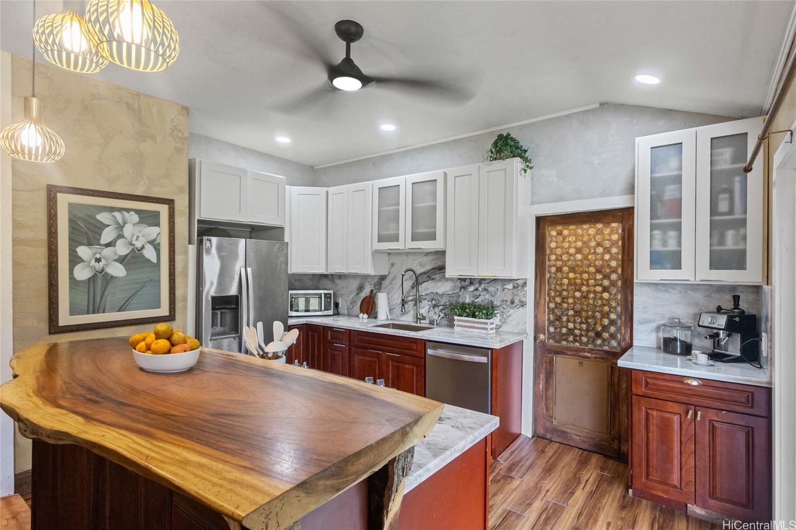 美しいライエにあるこの楽園の一角に恋に落ちてみませんか。人里離れたプライベートな4ベッドルーム、2.5バスルームのデュプレックスは、古き良きハワイの魅力を漂わせ、長く続く白い砂浜への権利付きアクセスも備えています。広々としたメインハウスは3ベッドルーム、1.5バスルームで、高い天井、オーシャンビュー、ハードウッドフロアが特徴です。二重壁構造で、屋根裏には収納スペースがあります。2021年に一部改装済み。キッチンは大理石とトラバーチンのバスルーム、特注のバスタブを備え、アップグレードされています。新しい柱と基礎梁は2021年に完成しました。家を上げてさらに1階を建てるチャンスです。窓とソーラー温水器は保証付きです。戸建て住宅に戻すことも、月額2,000ドルの賃料収入でテナントを維持することも出来ます。ユニットは1ベッドルーム、1バスルームのフルサイズです。ノースショアの中心部に位置し、通りを渡った向かい側にはあらゆるお店がありながら、プライベートな空間が保たれています。ワークショップ/ボードルーム、ランドリーエリア、トロピカルガーデンも完備。アクティブなライフスタイルの方に最適です。ショッピングセンター、レストラン、金物店、ガソリンスタンド、ビーチ、学校、BYU大学に近接しています。エフカイ・ビーチパーク「パイプライン」まで15分、カネオヘまで45分。タートルベイ・リゾートまで10分です。