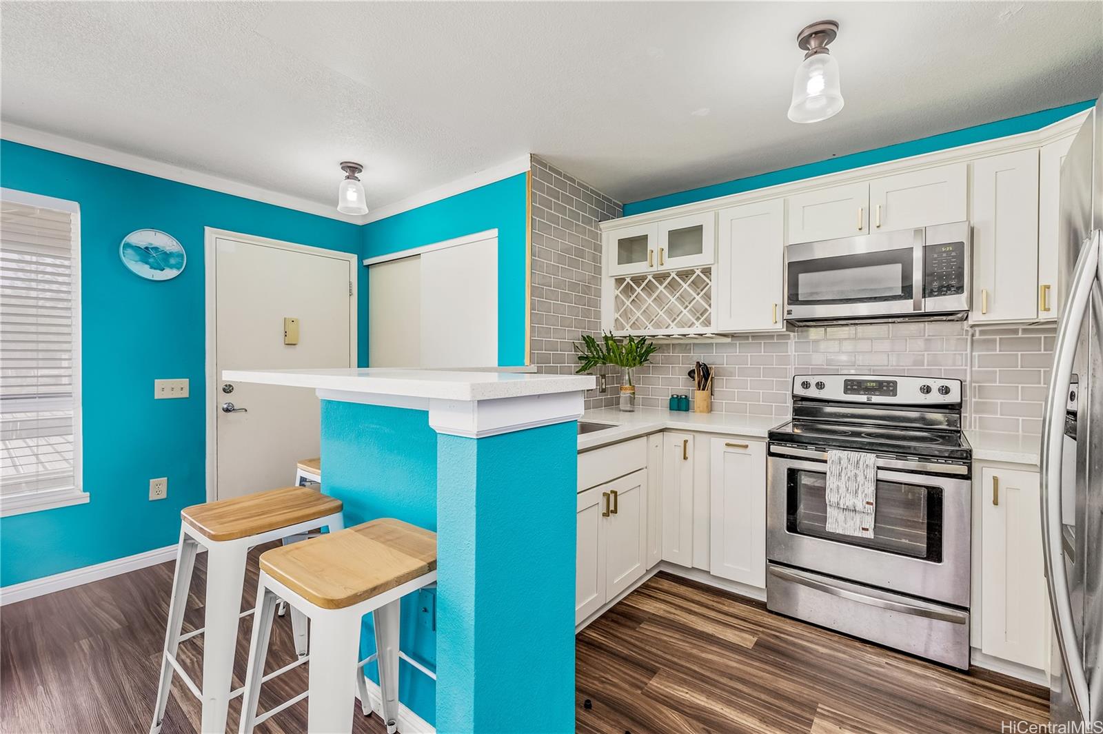 Welcome to your Mauka retreat— a rarely available 1-bedroom, 1-bath corner-unit townhome in the gated Havens of I‘i Vistas! Thoughtfully upgraded throughout with new vinyl plank flooring, cabinets and modern quartz countertops, this inviting home is ready for you to move right in. Two dedicated parking stalls provide everyday ease. The location is perfectly positioned to enjoy the best of Mililani Mauka, yet set back from the bustle, offering cozy nights and cool, misty mornings in quiet upland charm. A rare opportunity for entry into one of O‘ahu’s most private neighborhoods — a place where comfort, privacy, and lifestyle come together.