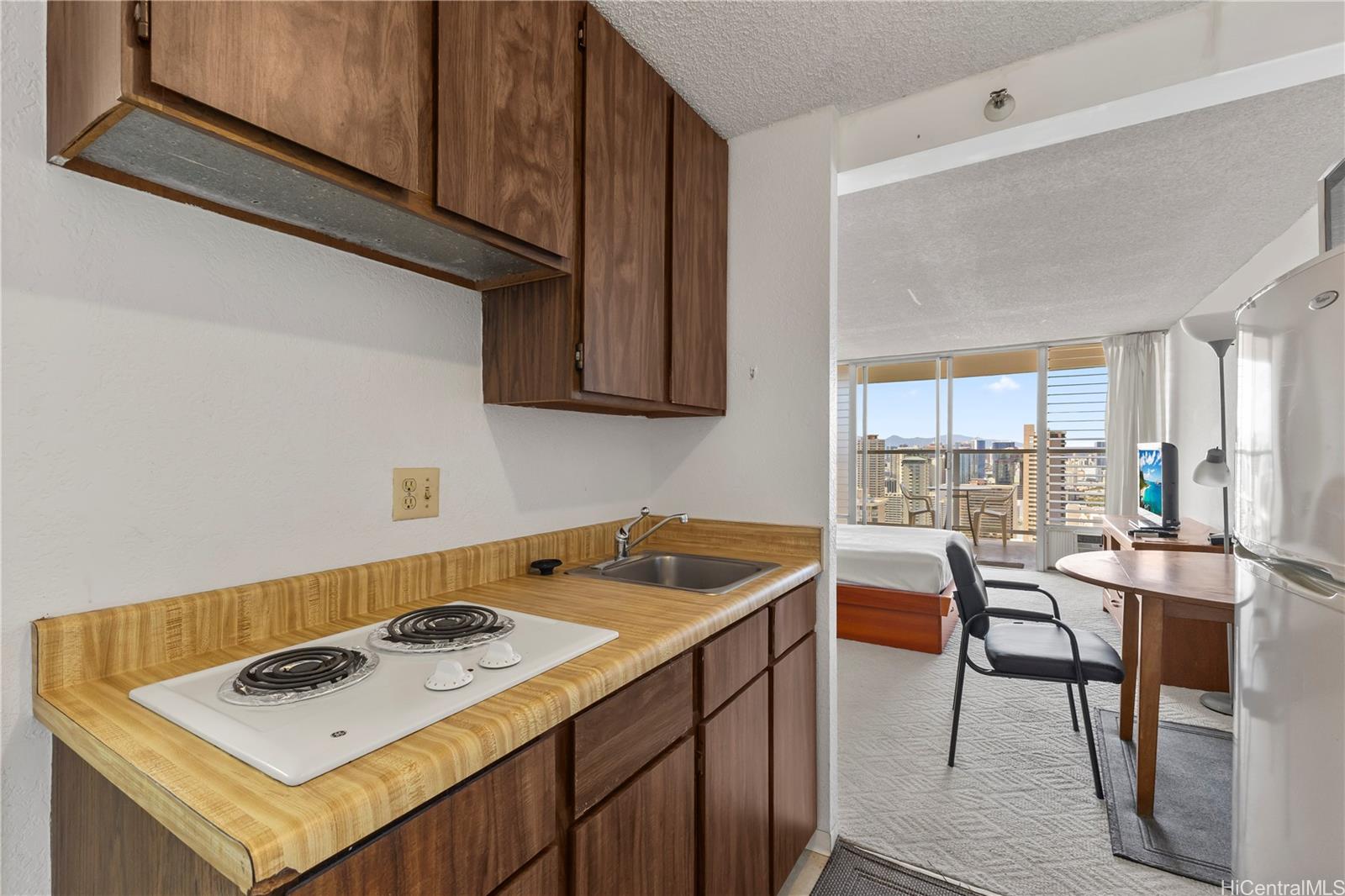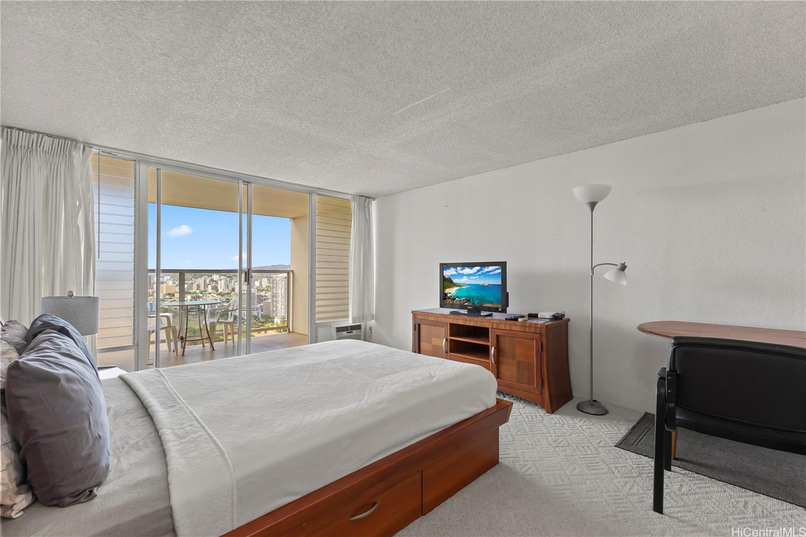 High above Waikiki with sweeping ocean, canal, and city panoramas. Perfect as a strong investment property or an easy, lock-and-go second home. This bright studio offers great versatility with consistent rental demand plus the comfort and convenience owners want for their personal getaway. Enjoy resort-style amenities including a pool, fitness center, sauna, and 24-hour security, all just minutes from Waikiki Beach, dining, and shopping. A standout value in one of Waikiki’s most popular buildings.