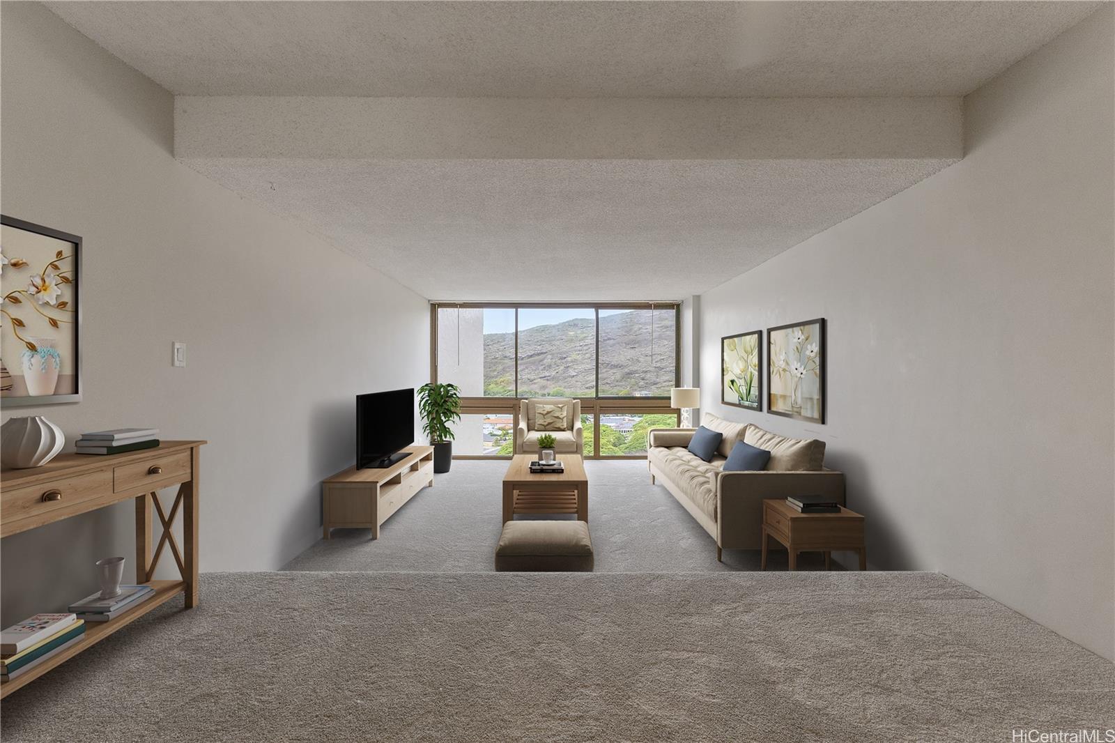 living space with peaceful mountain, city and ocean views. The home features brand-new carpet and comes with two parking stalls (one covered, one uncovered) plus a storage unit. Mauna Luan is known for its resort-style setting with two swimming pools, hot