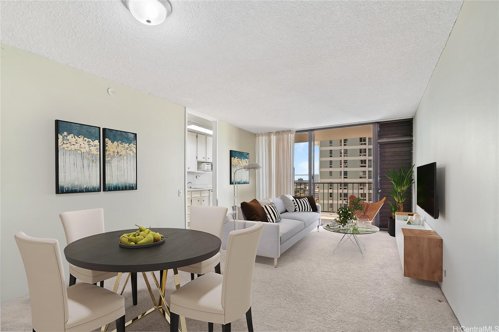 Welcome to The Camelot, one of Makiki’s most desirable and well-maintained communities. This 1-bedroom, 1-bathroom end unit offers sweeping Diamond Head, ocean, and city views with cool trade winds and a bright, open layout. Enjoy one covered parking stall with easy access to the P4 elevator. Conveniently located off Wilder Avenue, offering quick freeway access and close proximity to shopping, markets, schools, eateries, UH, Ala Moana, and bus lines. The Camelot has completed major renovations, including new plumbing, new elevators, spalling repairs, and full exterior repainting, and maintains 100% hurricane insurance coverage with no special assessments. Amenities include a pool, jacuzzi, sauna, BBQ areas, fitness center, recreation/meeting rooms with full kitchen, game room, 10+ guest stalls, car wash area, on-site manager, and evening security. Inside the unit: wall-to-wall carpet, clean, move-in ready, and a two-year home warranty.