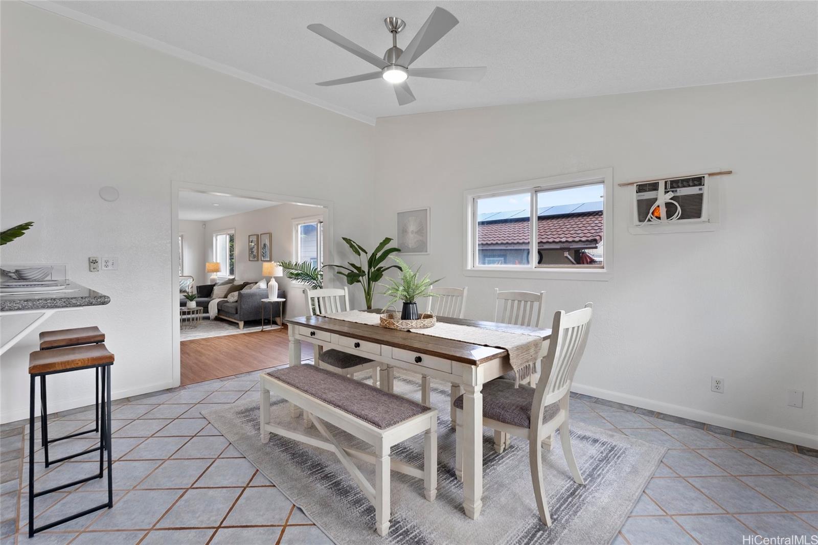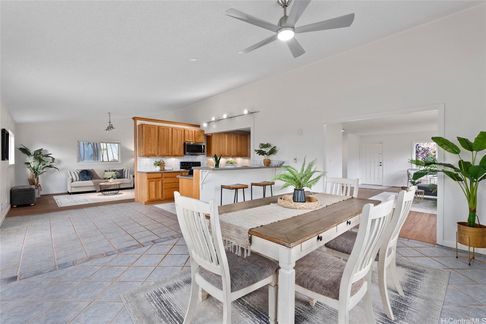 Spacious and breezy two-story Makakilo-Highlands home with just over 2,400 sq. ft. of living space and a functional, flexible layout. Enjoy multiple living areas, great natural light, and a comfortable flow throughout. The home features an owned PV system with battery to keep energy costs low, plus a two-car garage for storage and convenience. The backyard offers room to relax or play, highlighted by a mature mango tree that has produced abundant fruit over the years. Located in an established neighborhood known for cool mountain breezes and a strong sense of community, this property offers comfort, space, and the opportunity to make it your own.