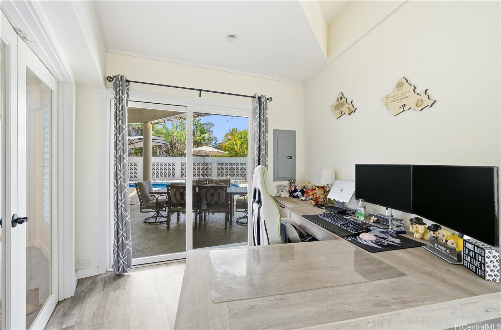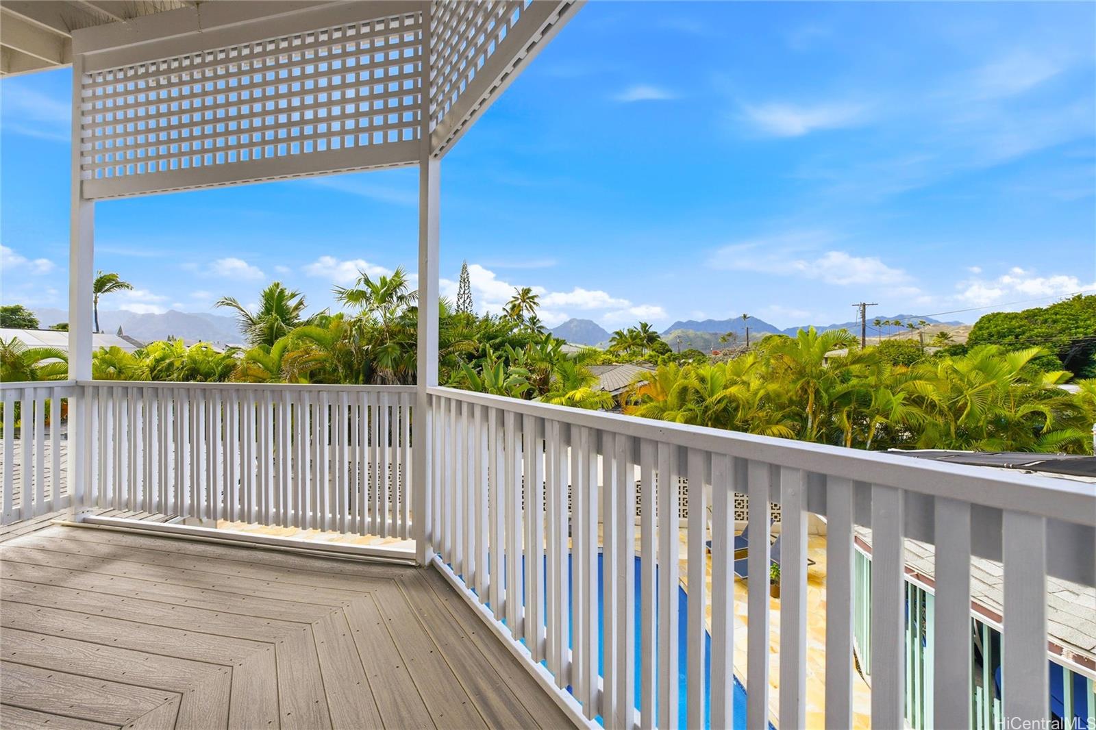 Island Living at its best — Just One Block from Kailua Beach on the corner of Palapu Street. Step into this one-of-a-kind 4-bedroom, 3.5-bath contemporary island home featuring vaulted ceilings and 2,936 sq.ft. of bright, open living space, all enclosed on a 10,000 sq.ft. lot. Relax or entertain around your solar-heated pool with both covered and open lanais—perfect for seamless indoor/outdoor living. This property includes a 3-bedroom, 2.5 bath main home, with most living areas on the main level. The private upstairs primary suite offers a peaceful, ensuite retreat away from the main living spaces. In addition, there is an attached 1-bedroom, 1 bath with a kitchen that can be used as a rental or mother-in-law suite. Move-in ready with 30 owned PV panels (NET metering), split ACs in every room, luxury vinyl plank flooring, an upgraded kitchen, motorized blinds, updated lighting, and more. Additional highlights include two laundry areas, an attached workshop/storage room, a garage, and extra parking. Located in highly sought-after Kailua, close to dining, shopping, and endless watersports—this home delivers comfort, flexibility, and modern island style. Your Kailua oasis awaits!