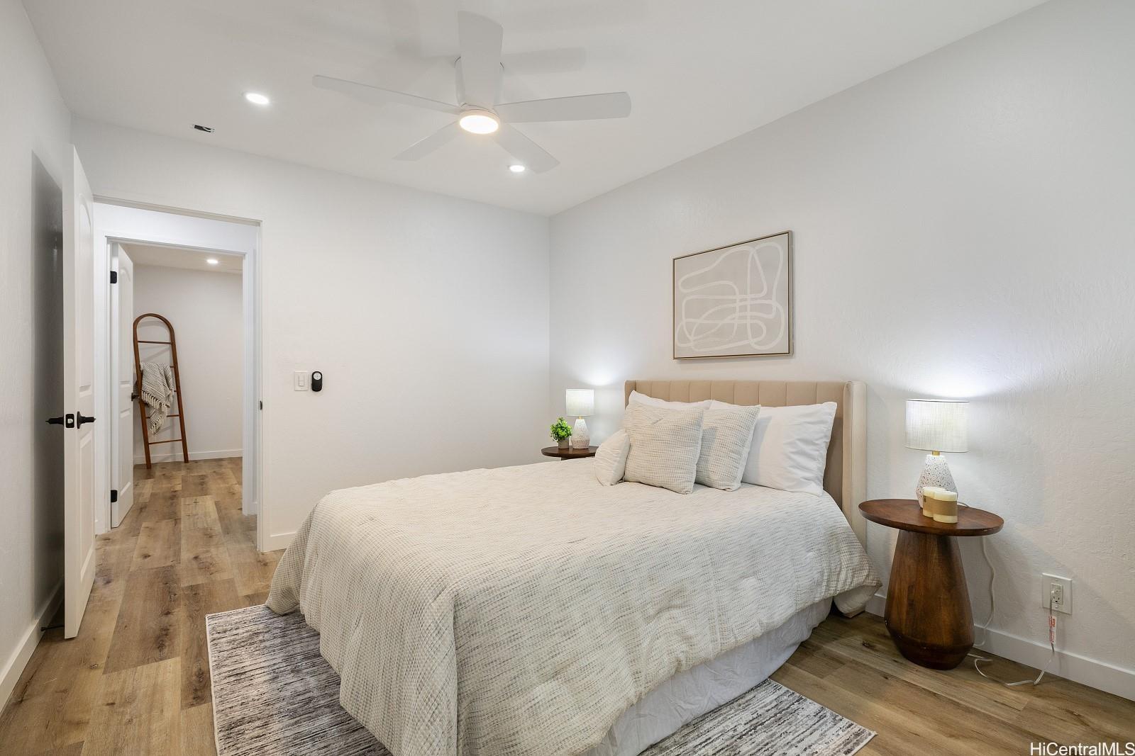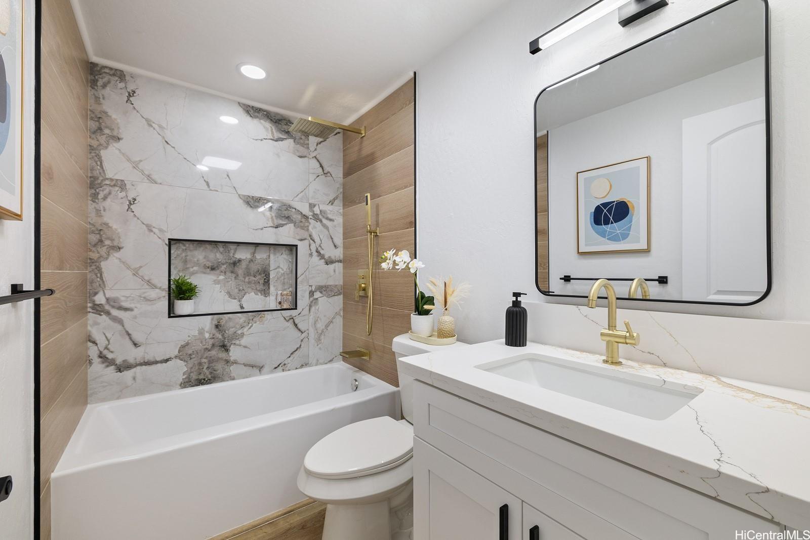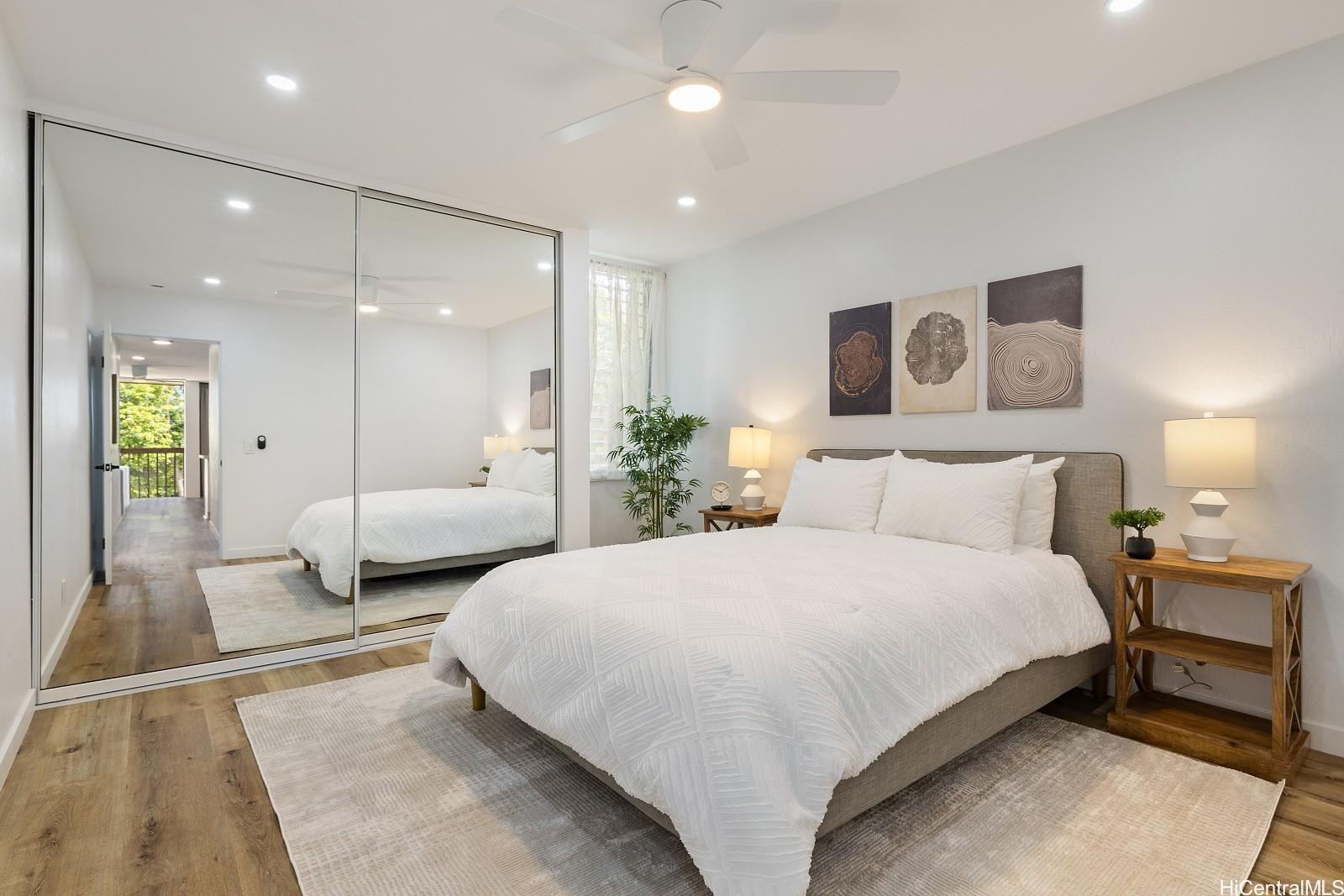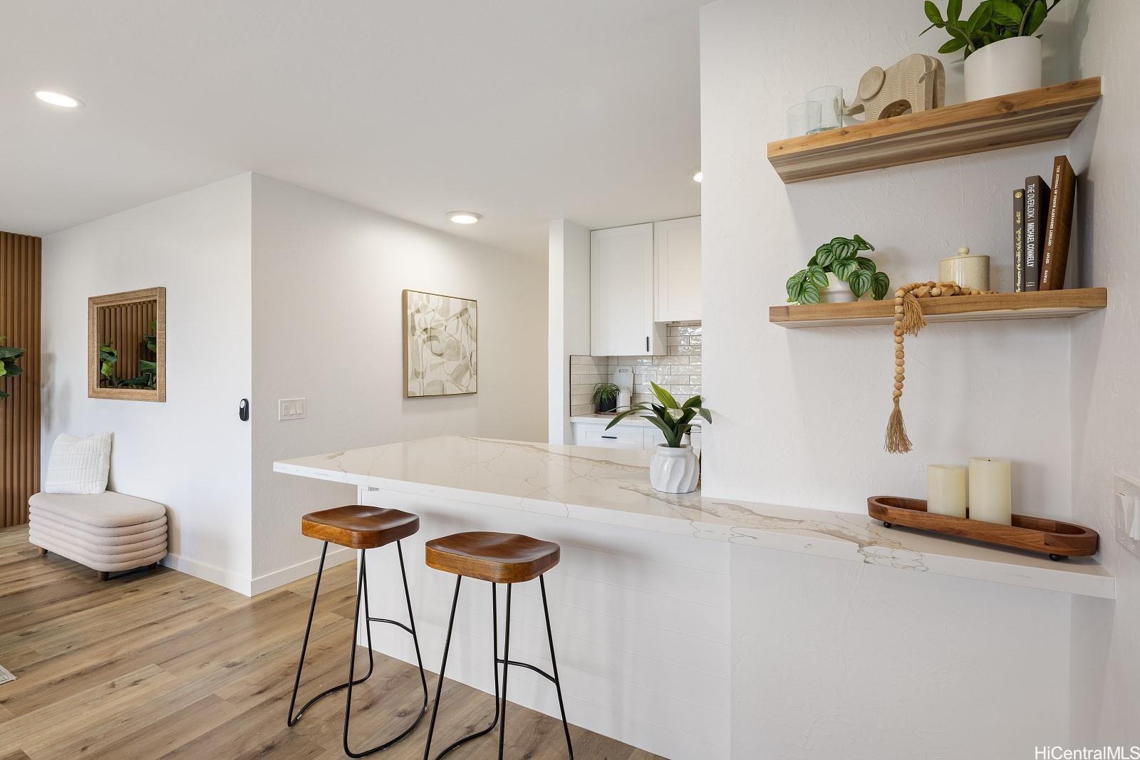 Don't miss this fully renovated, turn-key 3-bedroom, 1-bath townhome, just 5 minutes from the world-famous Makaha Beach! Three-bedroom units are rarely available—especially in move-in-ready condition. This spacious home features luxury vinyl plank flooring throughout, quartz countertops in the kitchen and bathroom, brand-new appliances, and abundant cabinet and storage space—perfect for full-time living or a vacation retreat. Enjoy the convenience of TWO assigned parking stalls and a full range of resort-style amenities, including multiple swimming pools, spas, children’s wading pools, a self-serve car wash station, tennis/pickleball courts, and a basketball court. Situated in a lush, beautifully landscaped gated community with 24/7 security patrol, Makaha Valley Plantation offers peace of mind and the true island lifestyle. Schedule your private showing today—this rare opportunity won’t last!