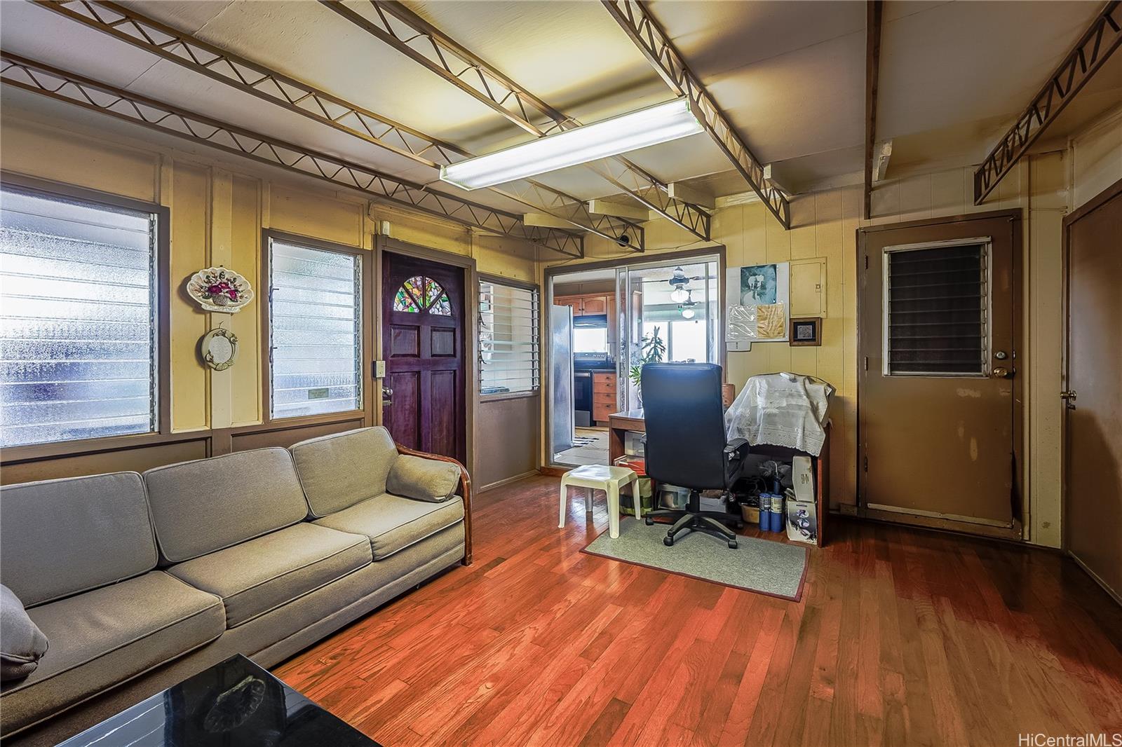 This beautifully maintained 4 bedroom, 2-bath home with a one-car garage offers panoramic views of the ocean and Ko Olina. Ideally situated on a quiet cul-de-sac, the property is surrounded by mature trees and features two spacious side decks—perfect for gatherings, outdoor dining, and BBQs.