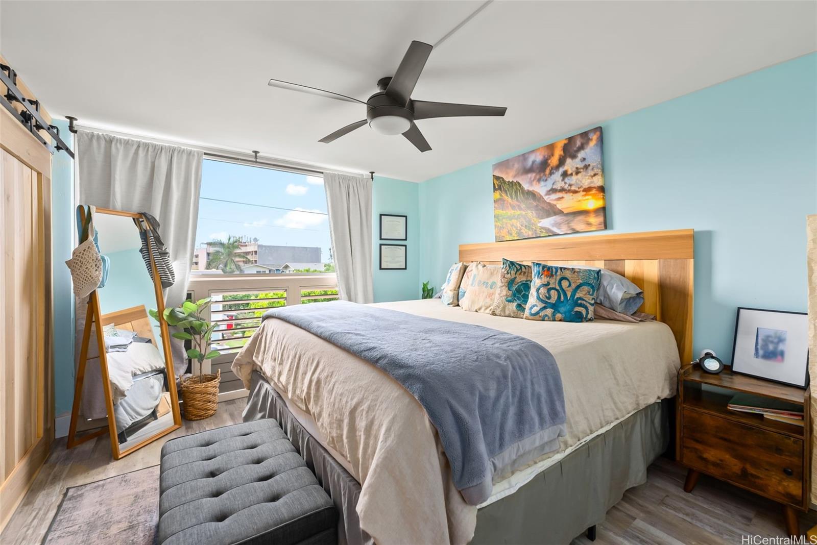Experience coastal living in this beautifully updated 2-bedroom, 1-bath condominium in the Ono Vista community of Waialua. This move-in ready home features thoughtful upgrades throughout, including sleek quartz countertops, fresh interior paint, recessed lighting, and durable vinyl flooring that enhances both style and function. A screened-in lanai extends the living area, creating a versatile space for relaxing, dining, or enjoying the tradewinds. The primary bedroom offers a custom closet designed for efficient storage, and the unit captures pleasant mount Ka'ala views. Ono Vista is a well-maintained community with a swimming pool and convenient access to nearby beaches. This updated condo presents an excellent opportunity for those seeking a clean, modern space in a highly desired North Shore setting.