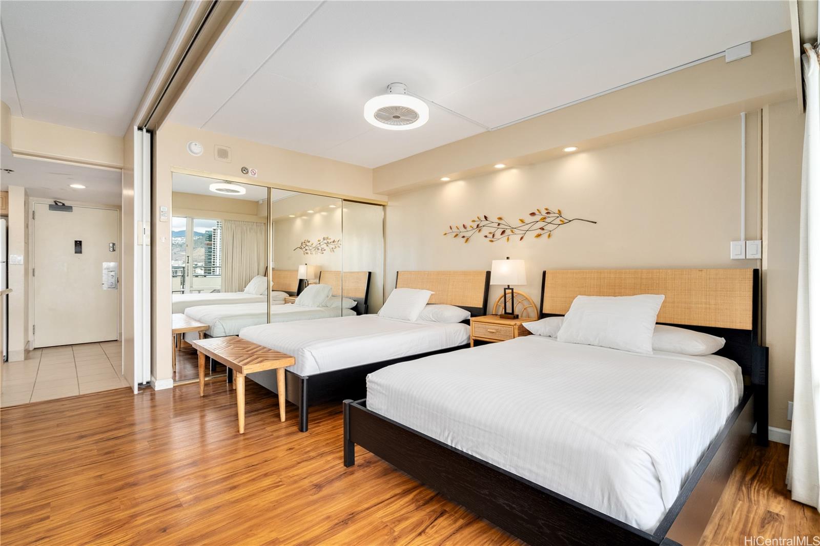 one-minute walk to the beach. The location is unbeatable at the entrance of Waikiki, close to well-known restaurants, Ala Moana Center, International Marketplace, and the Hawaii Convention Center.
