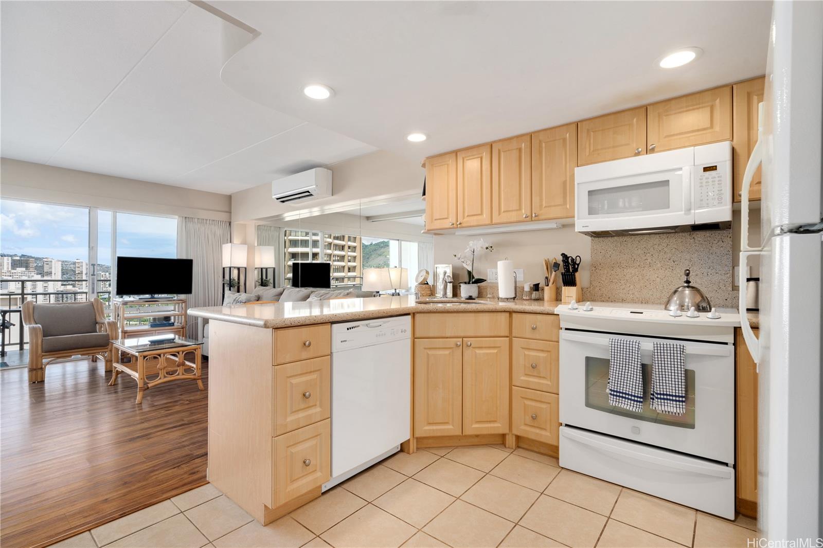 Enjoy cool breezes with beautiful city and mountain views, along with stunning sunrise vistas and even views of the moon setting over the mountains. This is a perfect opportunity to own a unit at the famous Ilikai—ideal as a vacation property, second home, or investment. Unit is actively rented and performs as a top tier rental unit.