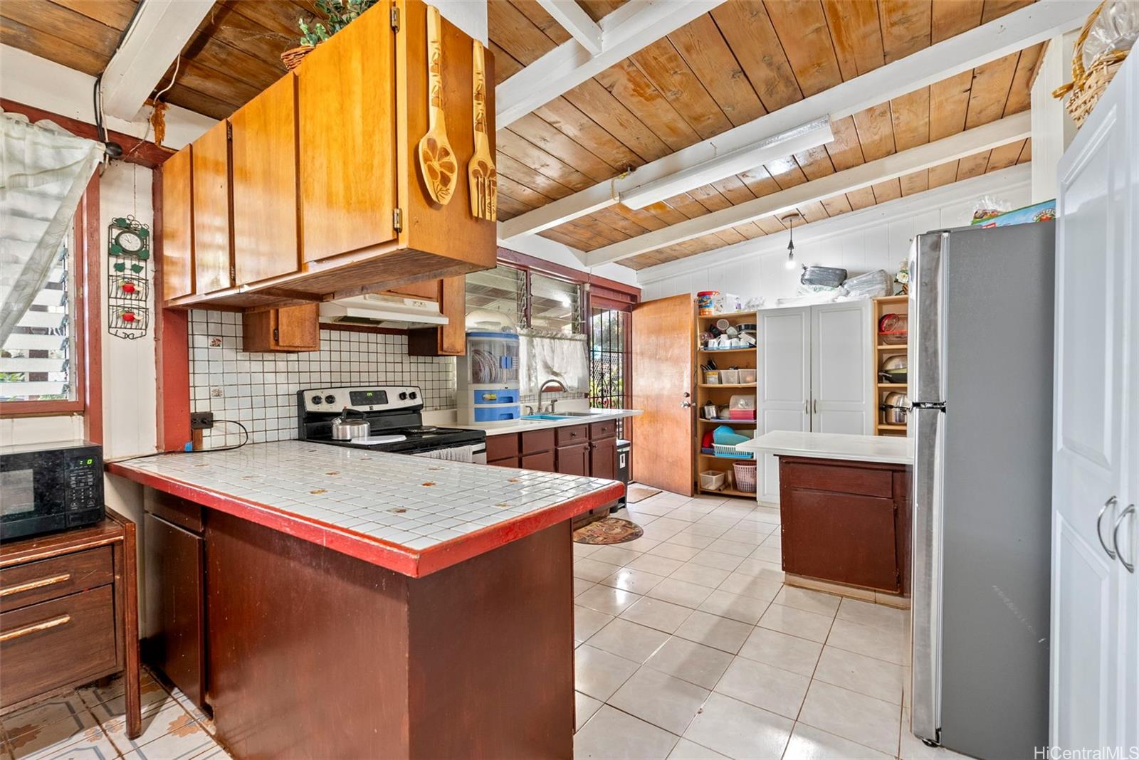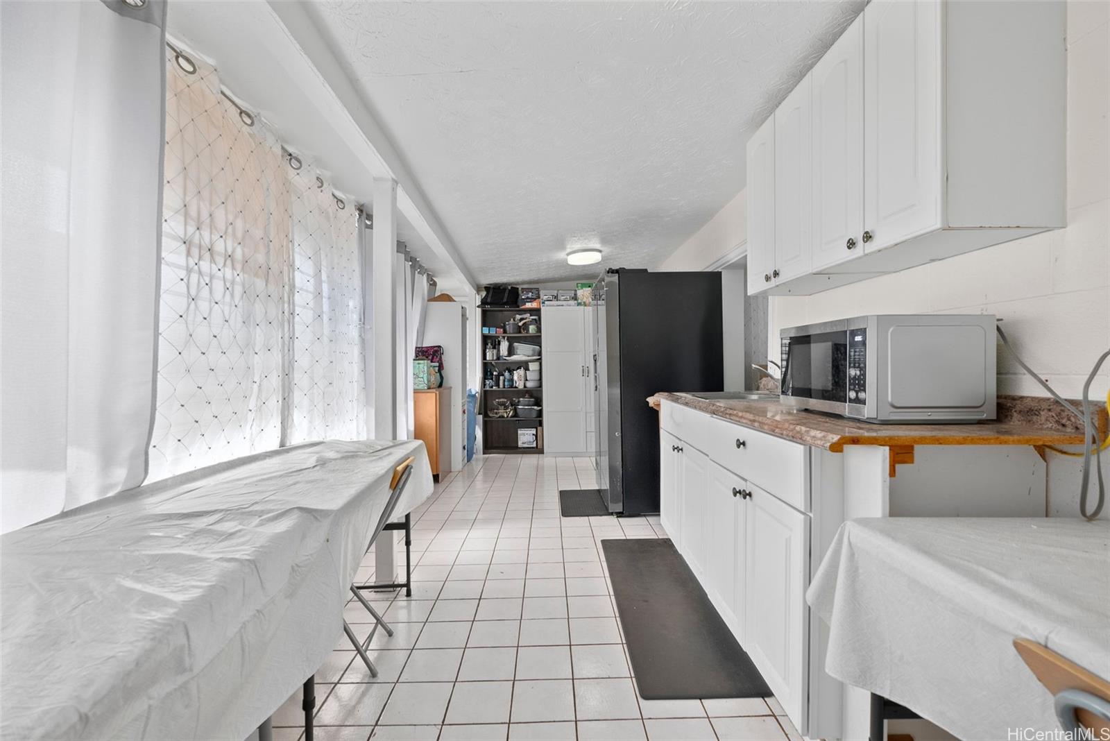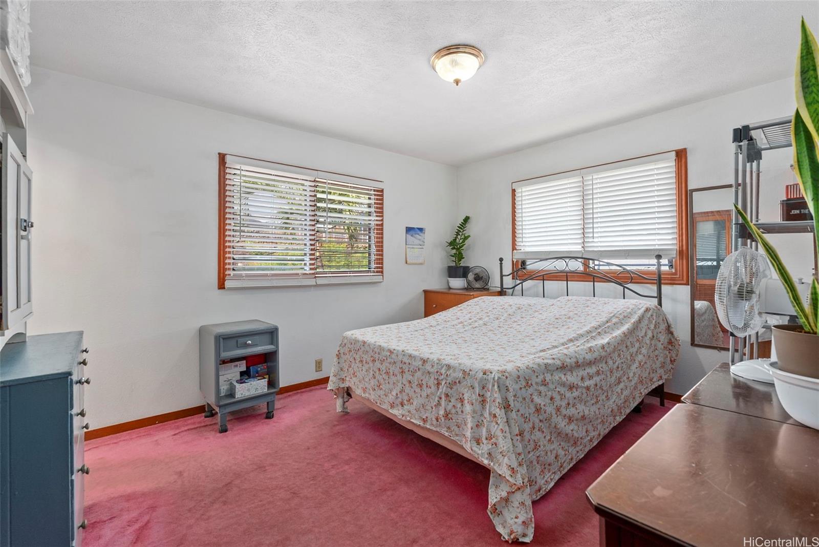 This beautiful multi-generational living 2-story home is available for those investors and/or primary occupant buyers located in the heart of Pearl City at Momilani neighborhood. There are three living areas with full kitchen/kitchenette and laundry. A spacious 3 bedroom with 2 full baths at the lower front of the home with ceramic tile flooring, updated bathroom in the primary room and a large bedroom with a window-type AC unit along with an enclosed storage area within the home that can be turned into a room making it a possible fourth bedroom if need be. The 2 bedroom with 1 full bath at the lower back with ceramic tile flooring, updated bathroom and kitchenette. The 3 bedroom with 2 full baths at the upper level with ceramic tile flooring, updated kitchenette and an enclosed lanai for a storage area as a bonus. A half bath on the lower level access from the exterior of the home. In addition, there are 44 photovoltaic panels (leased) that is based on consumption with a new roof installed in May 2025. The property is in close proximity to public schools, public parks, Pealridge, Walmart, Foodland Farms, H-Mart, freeway access, and more. Number of rooms does not match tax records.