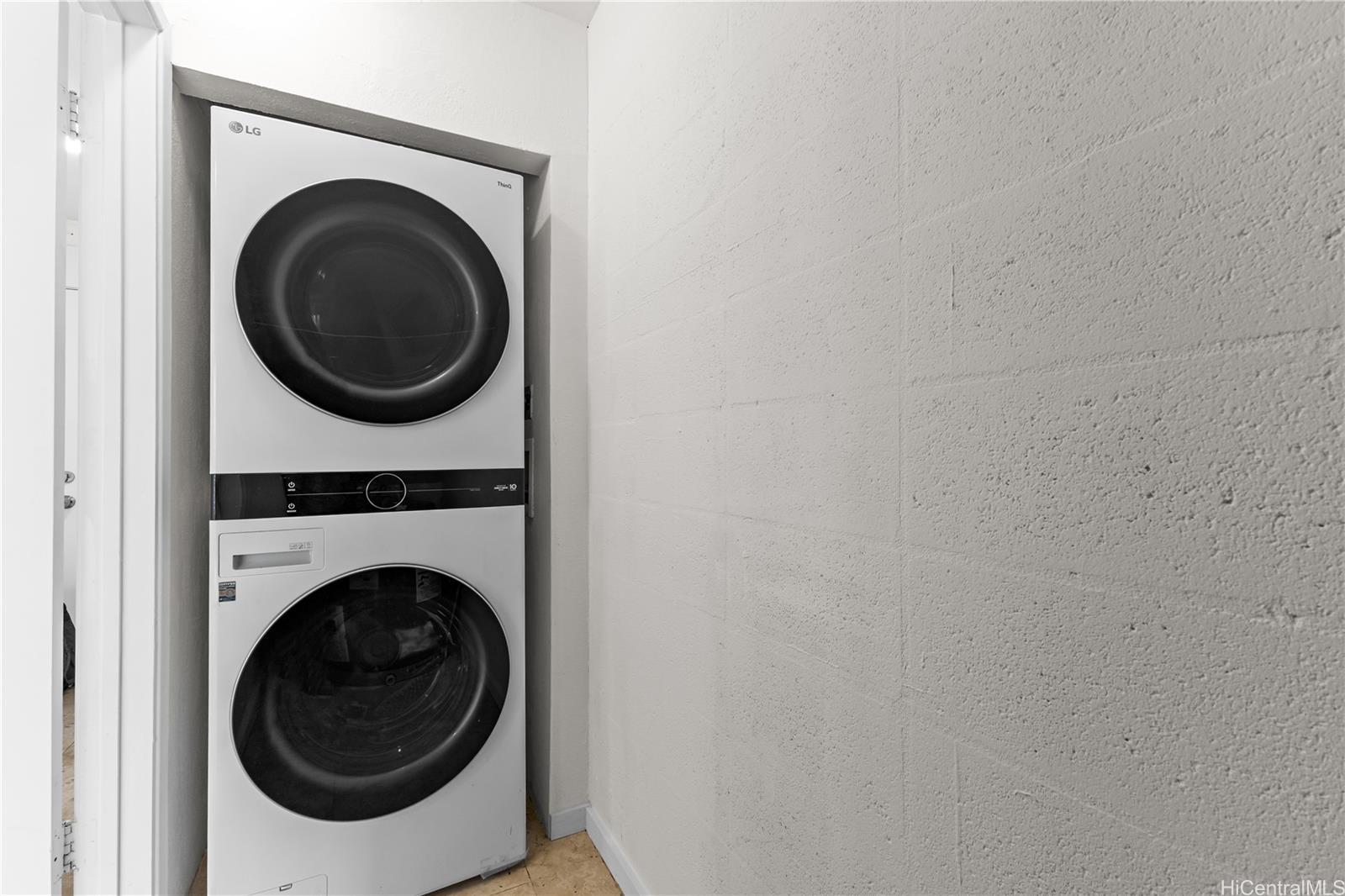 A remodeled 2-bedroom, 1.5-bath residence in Waialae Gardens with quality finishings and elevated setting for a slight ocean view. The remodeled kitchen features quartz countertops, hardwood cabinets, and new appliances. The baths are also remodeled with a tiled shower and new vanity cabinets and sinks. The original jalousie windows were replaced with vinyl louvers allowing the same cross-ventilation through out the home. Features tile floors downstairs and in baths and engineered wood flooring in bedrooms. Includes a new LG stacked washer and dryer. Comes with 1 dedicated parking stall and street parking nearby. This pet friendly community is minutes from the vibrant shops and restaurants of Kahala Mall with easy freeway access.
