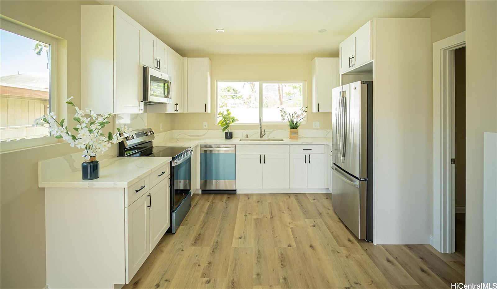 やる気のある売主!ADU 許可付きの新築物件!景色の美しい西オアフ島に位置するこの新築 2 階建て住宅は、ビーチ、ゴルフコース、バス停、学校、お店の近くにあり、便利で快適です。この物件には 5 つのベッドルームと 4 つのバスルームがあり、2,526 平方フィートの内部居住スペースと 300 平方フィートの屋根付きベランダがあります。メインの住居:上階には 3 つのベッドルーム、2 つのバスルーム、広々としたラウンジ エリア、2 つの独立した屋根付きベランダがあります。下階には大きなパントリー付きのオープン キッチン、明るいリビング エリア、2 台分のガレージが付いています。ADU:下階の完全に許可された ADU には、オープン コンセプトのリビング ルーム、フル キッチン、2 つのベッドルーム、2 つのバスルームがあります。また、専用の入り口、独立した電気メーター、専用の屋内ランドリー エリアがあり、大家族や賃貸収入を得るのに最適です。 7,193平方フィート(約7,193平方メートル)の完全フェンス付き敷地に位置し、プライバシーとセキュリティを高める電動ゲートを備えています。この素晴らしい機会をお見逃しなく!