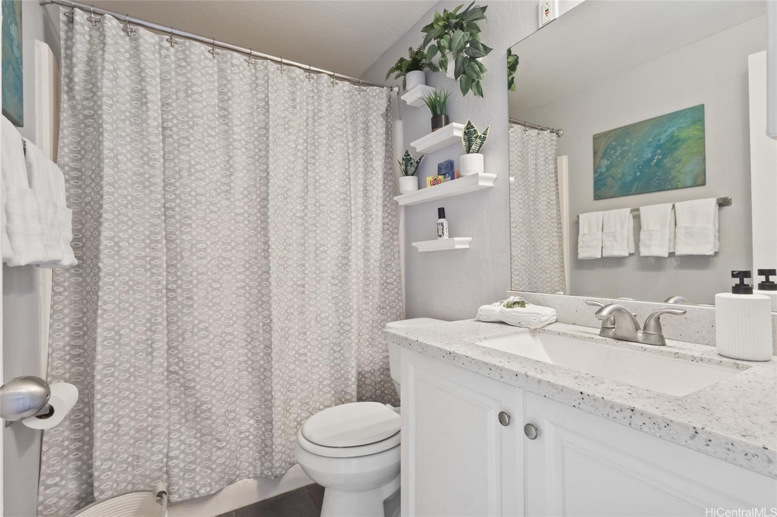 Condo being offered through usahomebids.com All offers must be submitted through platform, call listor for questions. See supplemental docs for agent and buyer FAQ. Welcome to Makaha Plantation unit 85C, top floor with beautiful ocean and sunset views, high ceilings and no one above you. Spacious 2 bedroom 1 bath, partially renovated in 2021, bathroom flooring and new paint. Kitchen expanded from gally to open flow. Priced to sell, and a must see next to pool and new jacuzzi. Makaha Plantation is gated and well maintained complex. Includes basketball court and clubhouse for parties. Fruit trees on property, quiet serene and highlights the beauty of Makaha Valley.