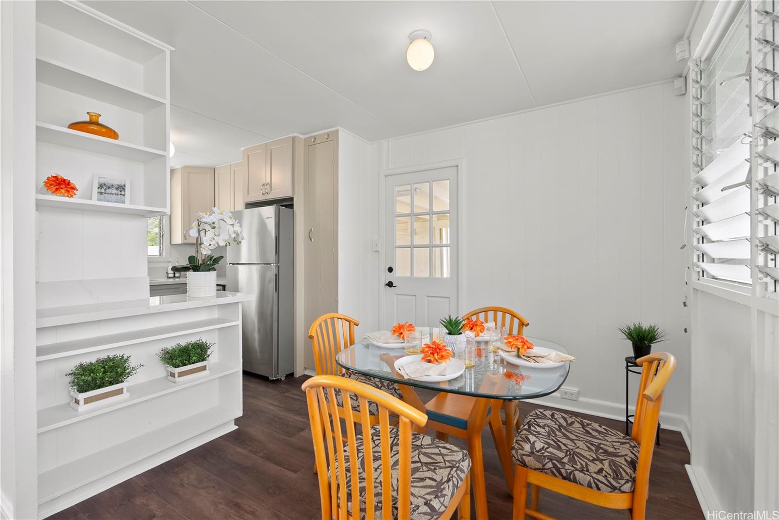 QUAINT, COZY & CHARMING 3BD/1BA KAILUA home is freshly remodeled w/stylish updates! Enjoy NEW floors, NEW refrig, NEW range, NEW dishwasher, NEW microwave, NEW faucets, FRESH paint, SPACIOUS covered lanai, NEWER roof & dreamy MOUNTAIN views. This flat, fully FENCED yard is perfect for pets, gardening, or outdoor fun. Rinse off in your private outdoor shower after a short walk from the beach or nearby park. Easy access to H3, Pali/Likelike Hwy, Marine Corp Base, Aikahi Park Shopping Center & Kailua town! This ISLAND GEM w/lots of indoor/outdoor STORAGE is full of ALOHA & move-in ready! 3 photos have been virtually staged(enhanced).