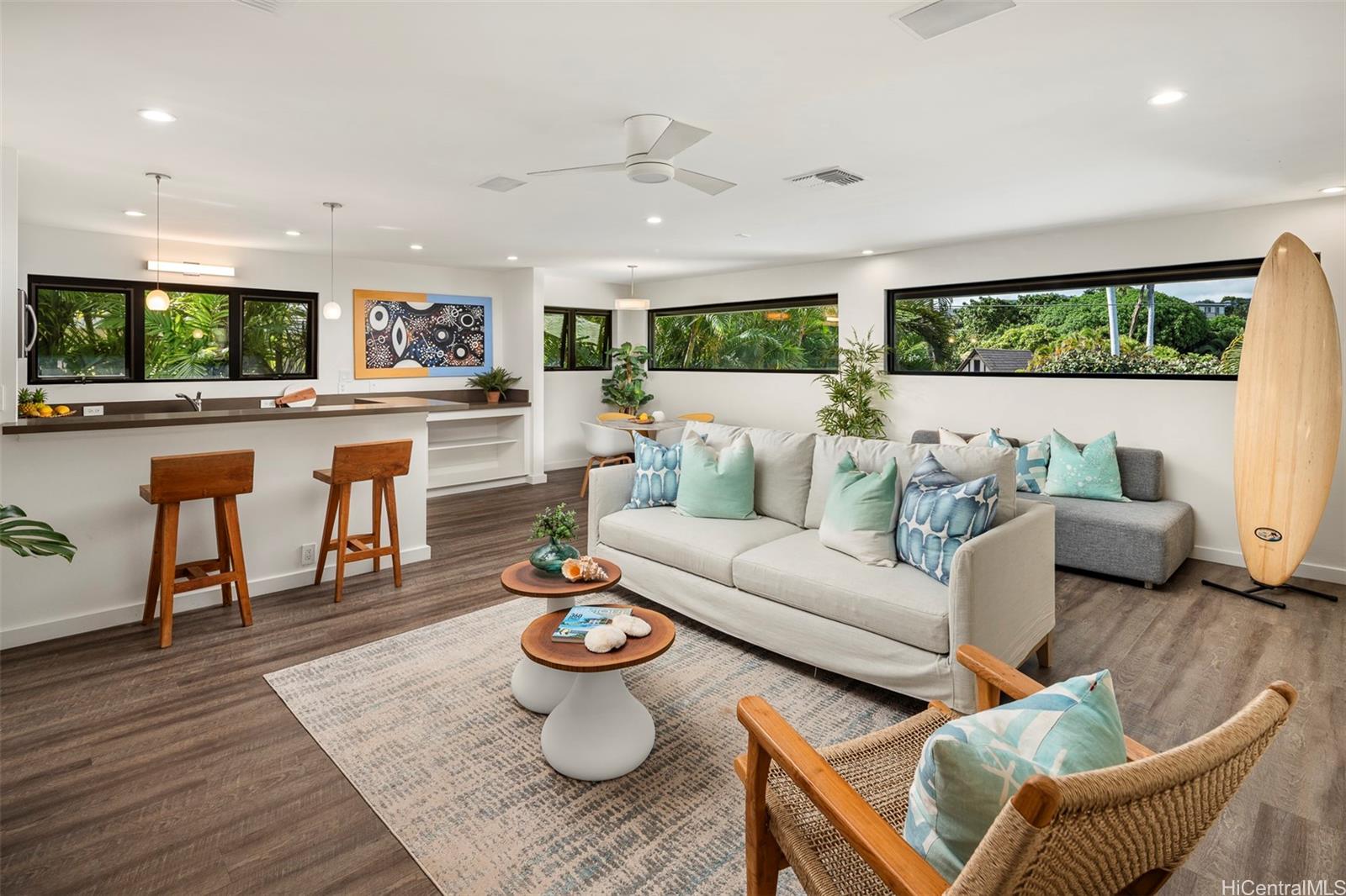 RARE OCEAN ADJACENT ESTATE ON ROYAL PLACE. Between Royal Place and Kahala Avenue lies an extraordinary estate offering privacy, space & refined coastal living just moments from the ocean. Set on a generous 14,809 sq ft parcel, this remarkable residence features 5 generously sized bedrooms & 5.5 baths, highlighted by a dramatic primary suite with open air lanai, dual walk-in closets & spa-inspired bath. Expansive interiors showcase multiple lounge & living areas designed for entertaining, all overlooking stunning landscaped grounds. A versatile studio apartment w/full bath & kitchenette sits above the 4-car garage, connected through a spacious gym complete w/ climbing wall. Outdoors, an array of inviting spaces includes a sizable poolside covered lanai with dedicated dining & entertaining areas, a free-form swimming pool w/ adjacent spa & cold plunge, dramatic water features & lush tropical landscaping filled w/ flowering trees & stately palms. Blending artistry & discretion, this home captures the essence of modern luxury & timeless sophistication. Conveniently located near multiple beaches, golfing, The Kahala Hotel & premier shopping and dining. Truly a very special property.