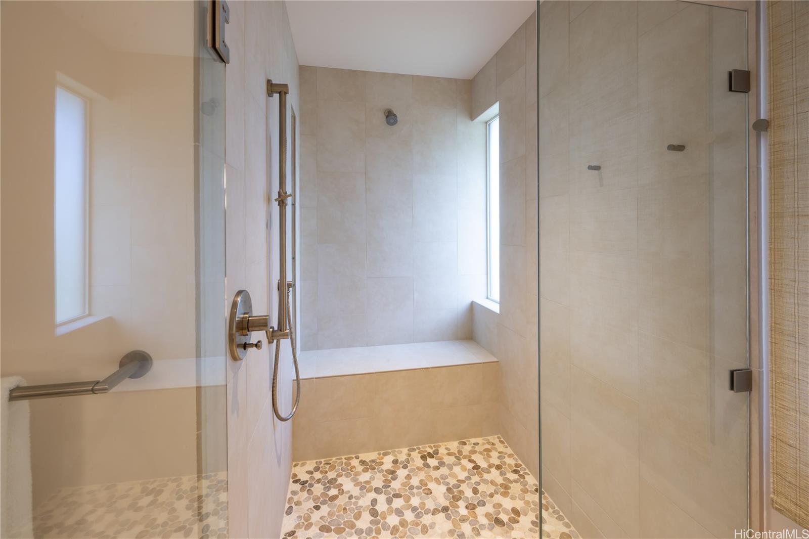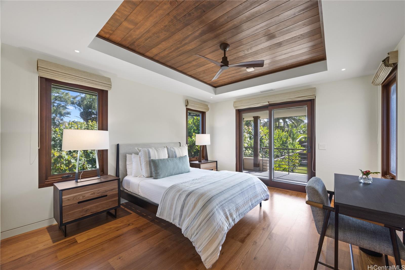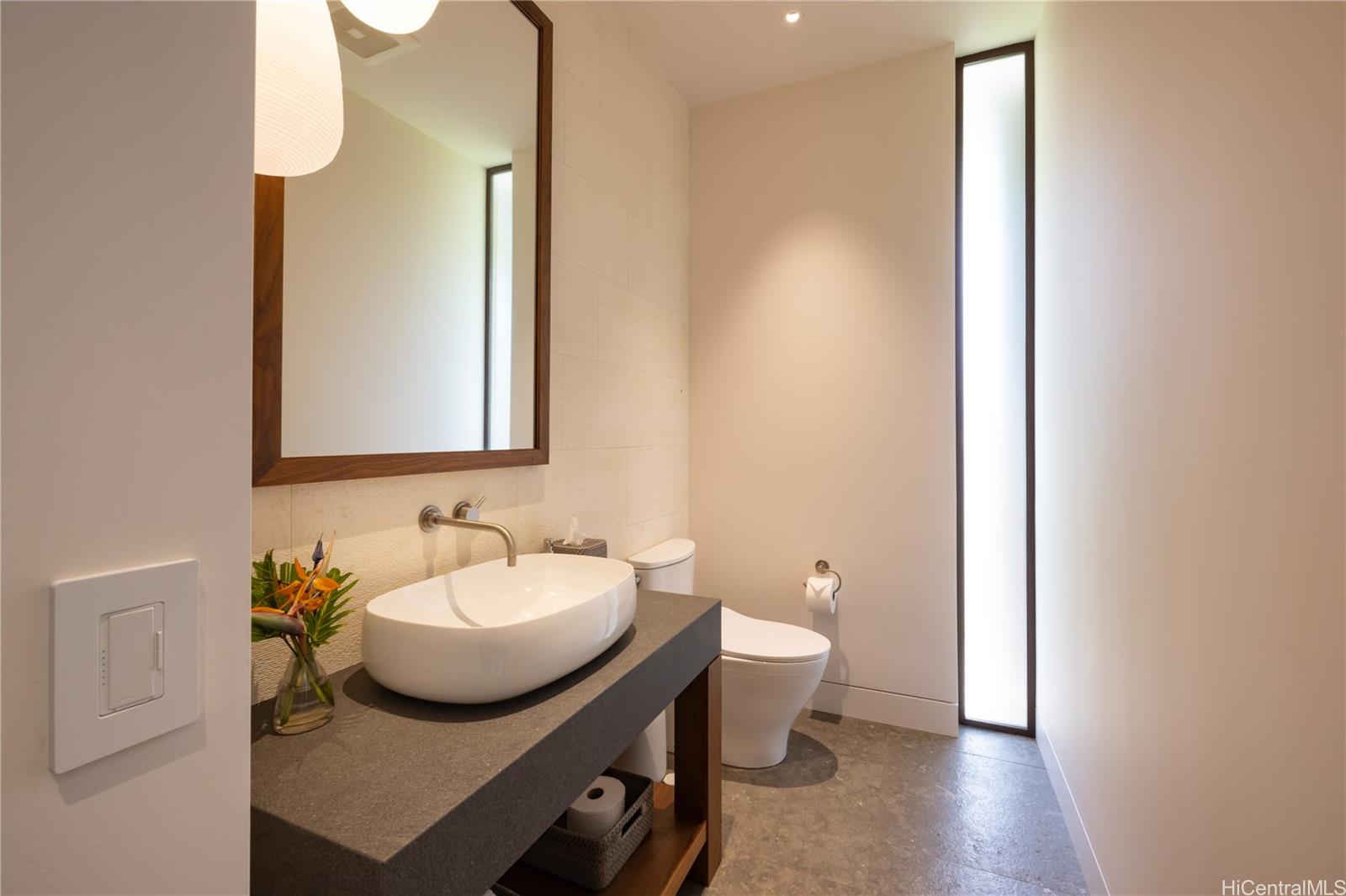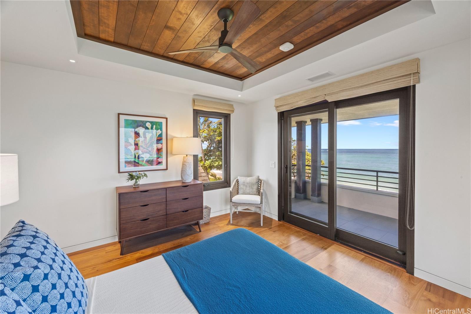 Masterfully designed beachfront residence in Malaekahana by architect Peter Vincent and Mokulua Builders. This exceptional home blends cutting-edge green design with dramatic ocean views and seamless indoor-outdoor living. A thoughtfully planned oceanfront lot features multiple pavilion-style structures that maximize views, natural light, and ventilation. The grand outdoor pavilion offers a covered lanai with full bath, kitchenette, travertine flooring, and mahogany doors opening to a lush courtyard. A striking 45-foot lap pool sits between the pavilion and main residence, creating a seamless water axis and direct connection to the ocean. Expansive lanais and large glazed walls bring in ocean breezes and continuous coastal views. Refined finishes include natural stone floors, limestone feature walls, custom woodwork, teak stair treads, mahogany railings, and custom doors and windows. A rare opportunity to own a world-class oceanfront estate on Hawai‘i’s North Shore—pairing modern luxury with thoughtful sustainability in one of the island’s most desirable settings.
