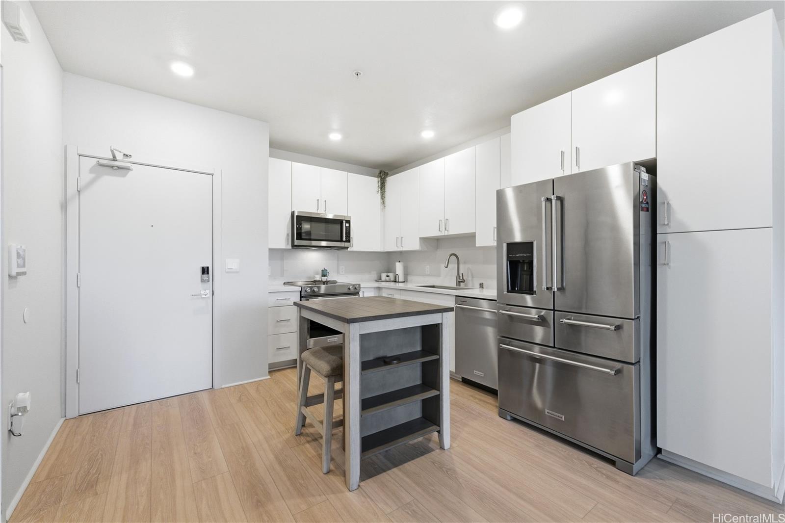 A comfortable 1-bedroom is now available in Nahele at Hoopili. This home features a spacious open kitchen with high-end stainless steel appliances, deep-mount sink, luxury vinyl plank floors, and an in-unit washer and dryer. The building includes elevator access, trash chute, and secured lobby with key fob entry. Nahele is part of a 25-year master-planned community designed to offer new parks, dog parks, schools, community pools, rec center, basketball and pickle ball park, outdoor work out parks, small and large businesses, easy freeway access, convenient rail access, and more. Don’t wait- a 1 bedroom listing in this community is rare.
