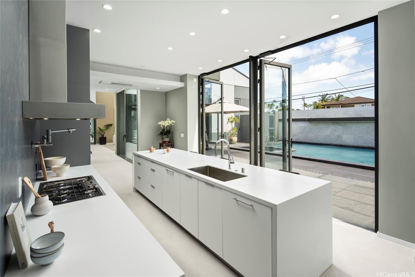 Experience luxury living in this expansive, modern home designed to seamlessly blend indoor and outdoor lifestyles. Open-concept layout with three family rooms, this home is filled with natural light and offers plenty of space for relaxation and entertainment. Miele and Bosch appliances, porcelain tiles imported from Italy , Studio Becker cabinets, Corian countertops, 4 oversized en-suite bedrooms adorned with termite resistant hardwood flooring for added style and durability. Therapy pool (2-4 ft deep) Jacuzzi, a tranquil koi pond, and an enclosed yard perfect for entertaining or unwinding. Elevator shaft, two wine refrigerators, 2 dishwashers, and 2 laundry areas, making this home as practical as it is luxurious. An attached ADU provides flexible living options for guests or extended family. The property also features two outdoor powder rooms for pool and yard use, premium German-engineered gates, and a state-of-the-art video security system for peace of mind. Every detail, from granite exterior finishes to thoughtfully designed spaces, exudes sophistication. Few Blocks away from Sandy Beach.