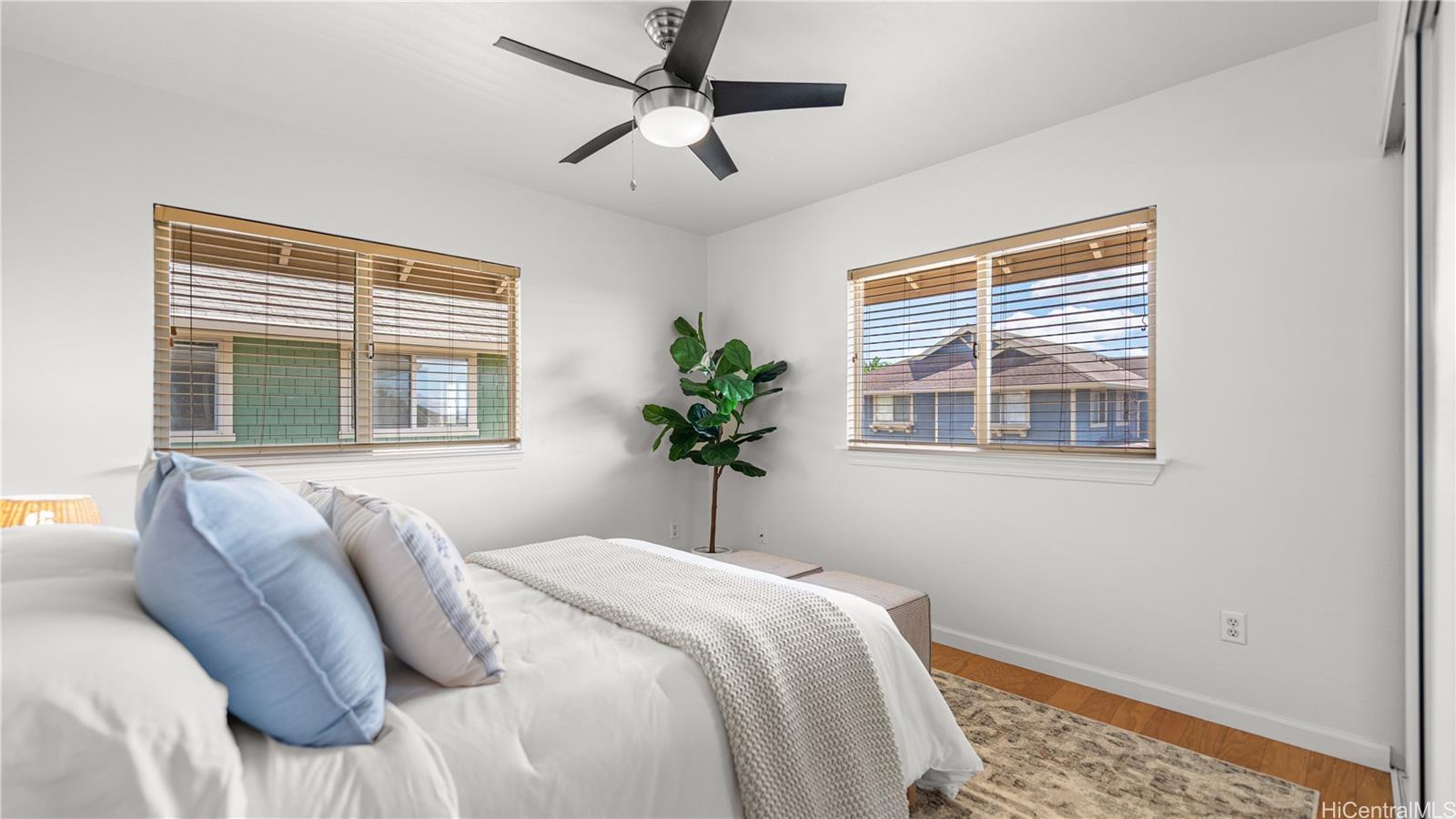 Welcome to Ocean Ridge at Makakilo—where comfort, convenience, and cooler island living come together. This well-maintained 3-bedroom, 2.5-bath townhome is perched several hundred feet above sea level on the slopes of the Waianae Range, offering cooler temperatures and refreshing trade winds year-round. Built in 2006, this home is truly move-in ready with a freshly painted interior and a functional, open layout ideal for modern living. Enjoy the convenience of a spacious 2-car garage with washer and dryer, plus two additional parking spaces on the garage apron—rare four-car parking for a townhome. **VA Assumsable rate to qualified buyers with COE at 2.25 with approx 526k balance. World-class Ko Olina resorts and beaches are a short drive away, perfect for weekend relaxation or sunset walks. Commuters will appreciate quick access to the H-1 freeway, making travel across the island easy and efficient. A fantastic opportunity to enjoy cooler Makakilo living with urban conveniences close by—don’t miss it. Home warranty included through 12/2029 with Liberty Home Guard. Fees include: fiber optic internet, water, trash, etc.