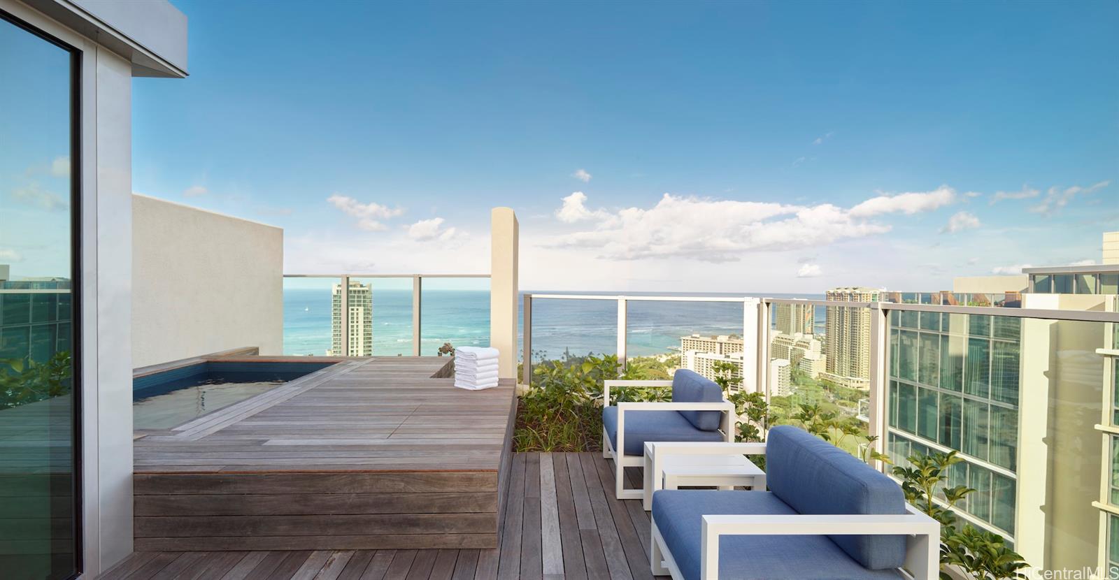 The last developer own Penthouse in The Ritz-Carlton Residences, Waikiki Beach. This rare offering presents an unparalleled opportunity to own a penthouse in one of Waikiki's most coveted addresses, combining refined luxury, breathtaking views and and exclusive rooftop oasis overlooking Waikiki, the Pacific Ocean. This 3 story penthouse features impeccable finishes and spacious living area, with 3018 square feet of interior space, 3 bedrooms plus den/entertainment room, and 5 bathrooms. The 954 square feet private rooftop has a plunge pool, and personalized concierge services, ensuring that every desire is met.