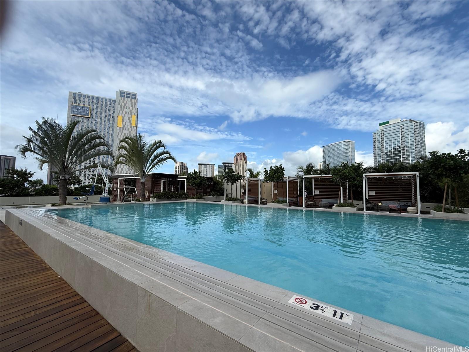Aalii offers an impressive resort style amenity deck designed for relaxation and recreation, featuring a spa, pool deck, BBQ areas, yoga rooms, private pavilion, multiple cabanas, a fully equipped fitness center, children's pool and playground along with inviting indoor and outdoor gathering spaces.