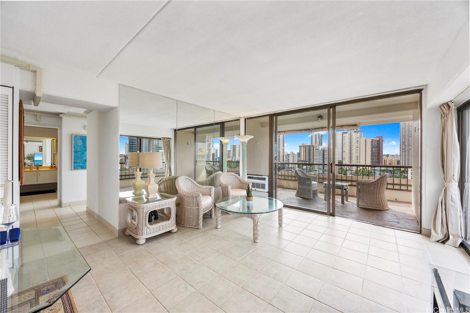 Excellent location on park setting with tropical grounds, close to famous Waikiki beaches, Ala Moana Shopping Center, restaurants and the University of Hawaii. The sprinkler/fire alarm system has been completed throughout the building without any special assessment. The Marco Polo offers resort-like amenities which include a wonderful large swimming pool, sauna, tennis, basketball/pickleball courts, BBQ, golf driving nets, a convenience store in the lobby, car wash area, bicycle/surfboard storage, lots of guest parking, storage, and 24 hour security.100% Hurricane Coverage with reasonable monthly maintenance fees. Photos have been Enhanced.