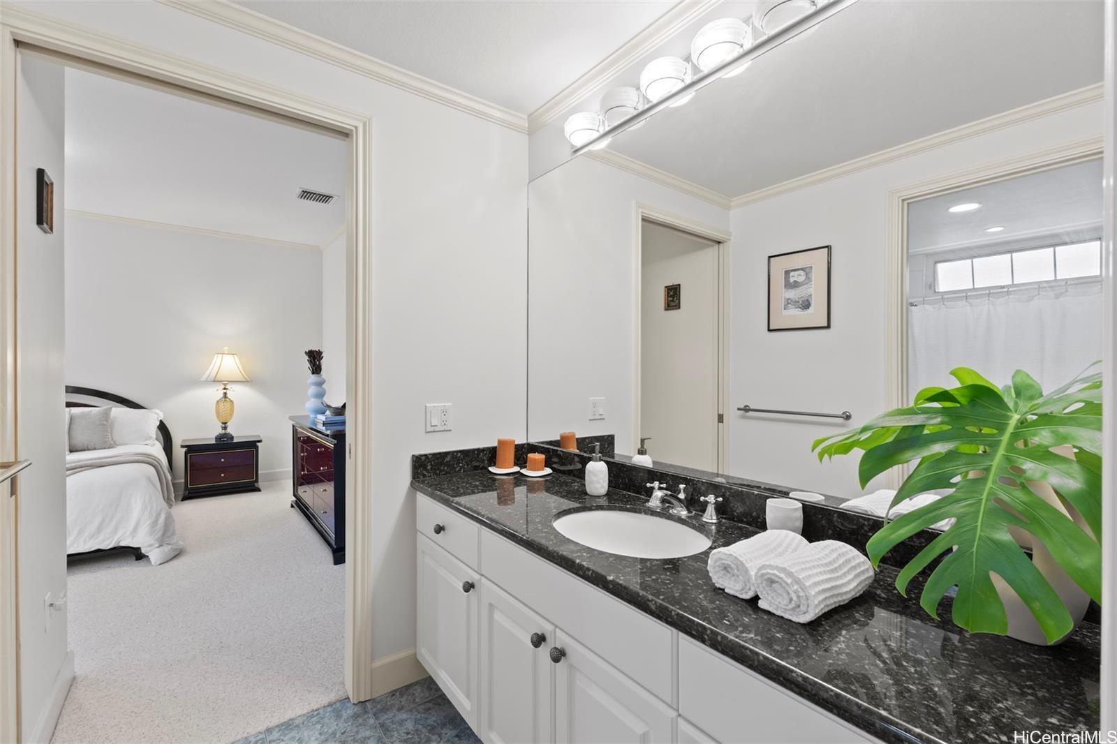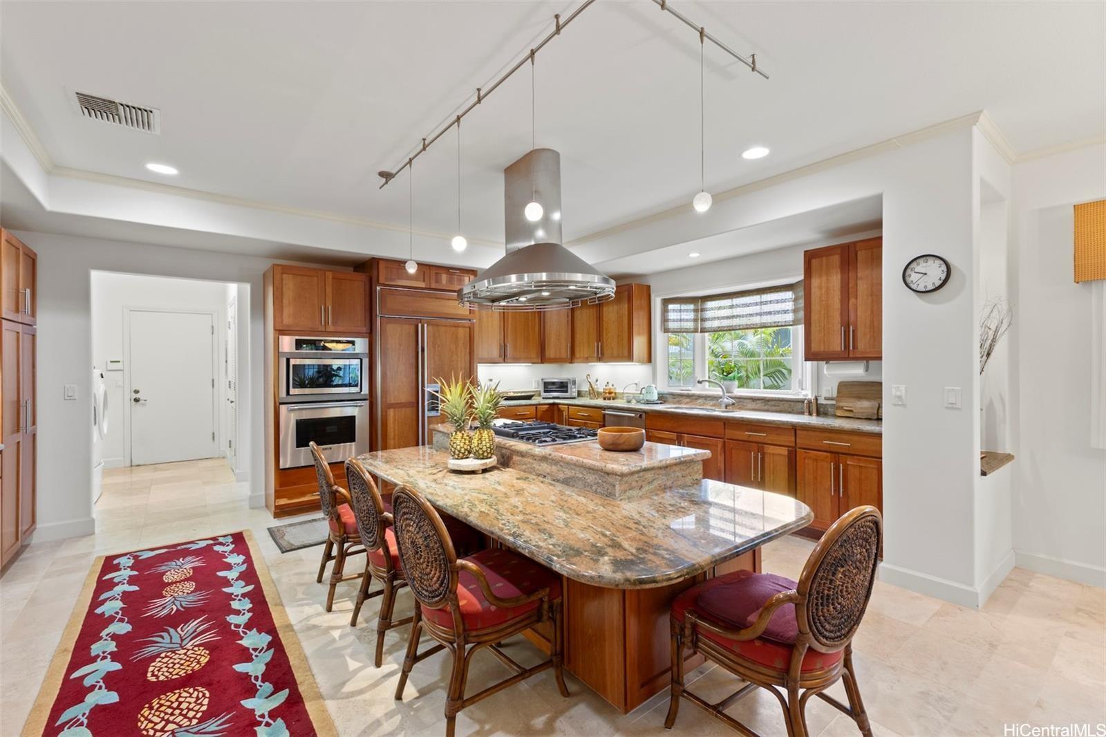 An award-winning residence in the prestigious Kahala neighborhood finely constructed with attention to detail and quality. This single level home of 3-bedrooms, 2 full baths, & 2 half baths blends modern elegance with timeless Hawaiian charm, offering an easy and comfortable living experience. The chef's kitchen is equipped with Thermador and Sub-Zero appliances, custom cabinetry, and a large countertop, ideal for culinary creations and gatherings. The open-concept living spaces, high ceilings, and seamless indoor-outdoor flow, are perfect for entertaining. The level lot showcases a landscaped garden and a spacious lanai, creating a private retreat for enjoying Kahala's idyllic climate. Equipped with a fully owned PV system, central air conditioning, pre-wired speakers, and a generously sized garage. Located in the heart of Kahala, minutes from world-class beaches, Kahala Mall, Waialae Country Club, and top-rated schools, providing both tranquility and convenience.