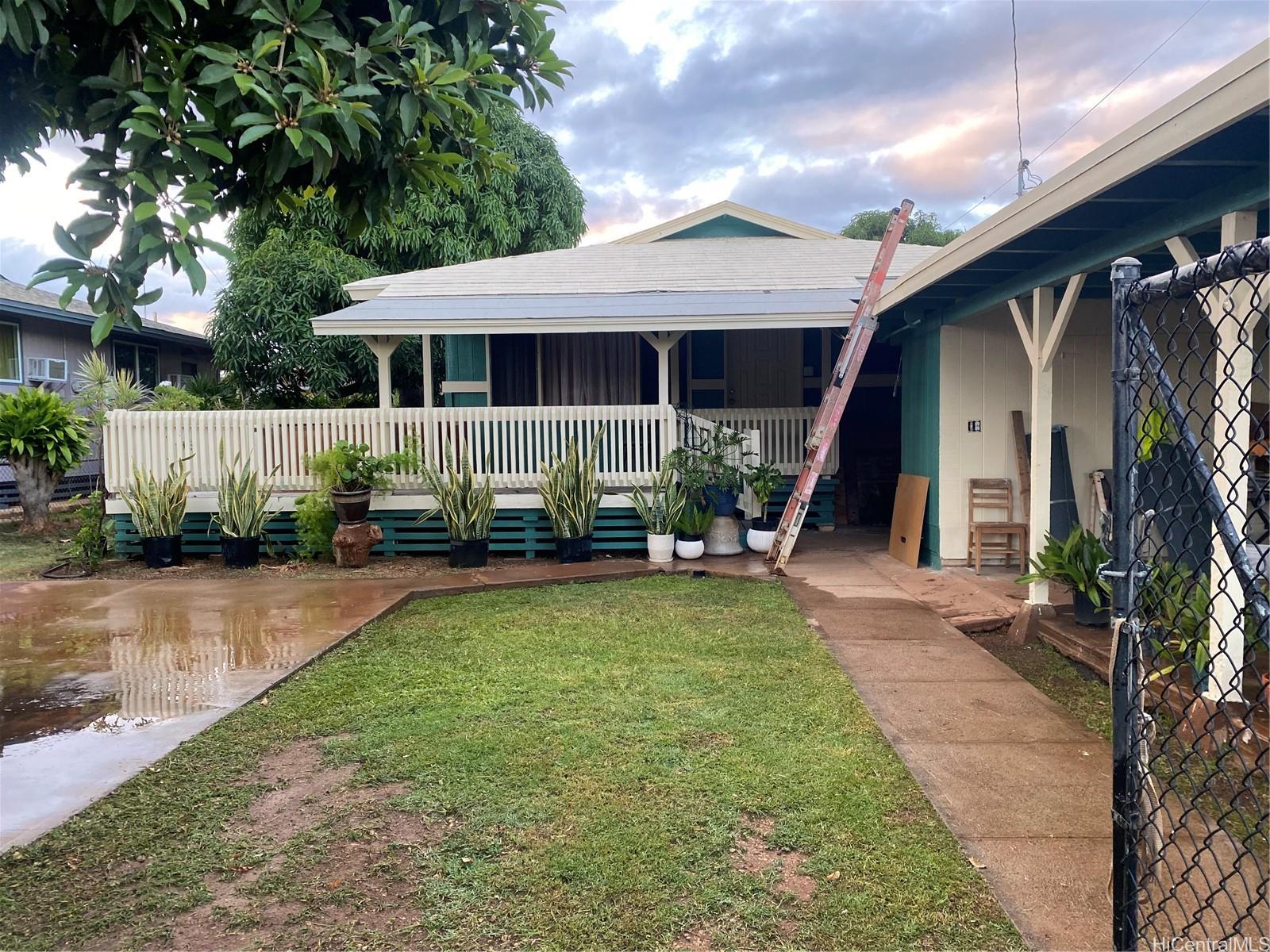 Welcome to this single-level home featuring classic island charm with generous covered front lanai, perfect for relaxing or entertaining. Freshly painted exterior and interior upgraded light fixtures. This 3-bedroom, 1 bath offers a spacious layout with mature fruit trees like Haden mango, providing privacy and cooling shade. This property is a great opportunity for families and creating lasting memories.