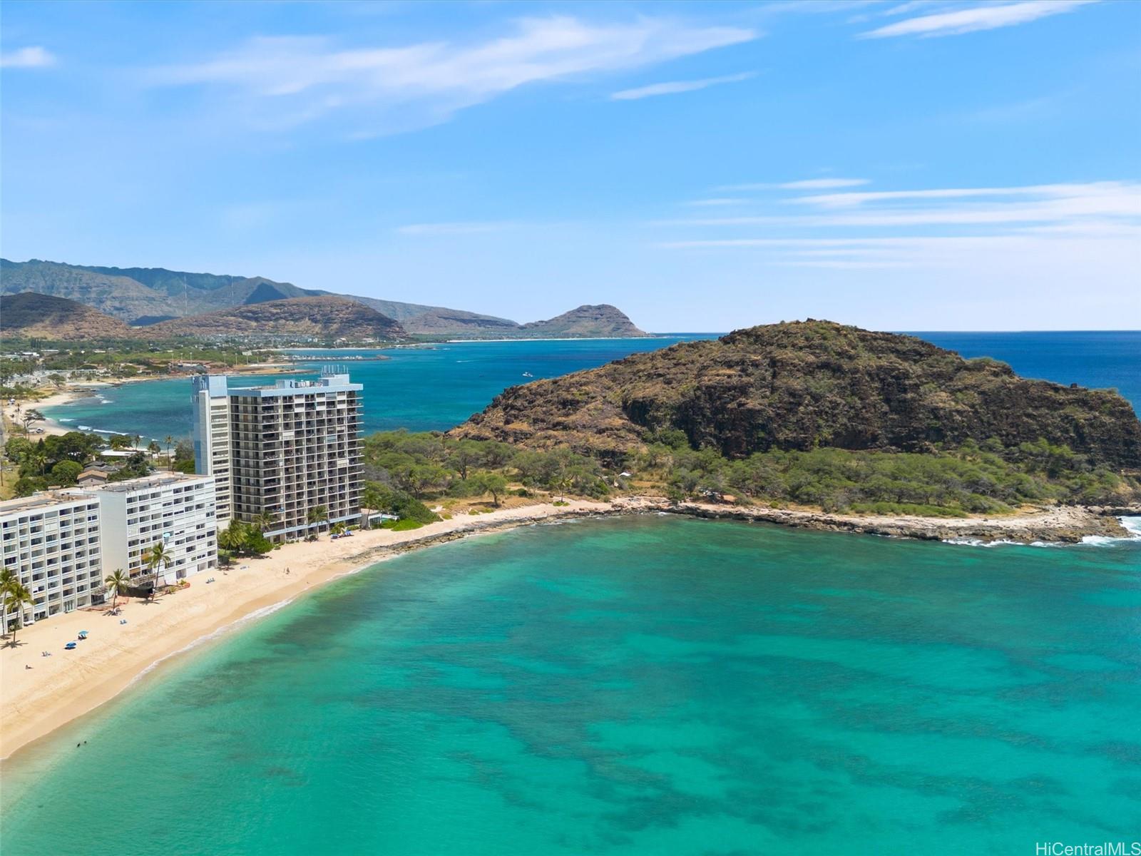 Amazing opportunity to live directly above the ocean and beach. This preferred tower and unit is located on the 5th floor which offers sweeping unobstructed views of the ocean, sunset and mountain range. Once you enter the gated entrance you feel you are on vacation immediately. From the ground level you have access to one of the nicest beaches and reefs on the island literally out your door. The front door faces the Waianae mountain range and the primary bedroom with private lanai the ocean. Sleep at night listening to the calm waves cascading over the sandy beach. The unit has roll down hurricane shutters and a freshly reglazed tub. The unit is updated and move in ready. The building just had spalling work completed and the exterior was painted. Do not hesitate because this is truly island living at its best.
