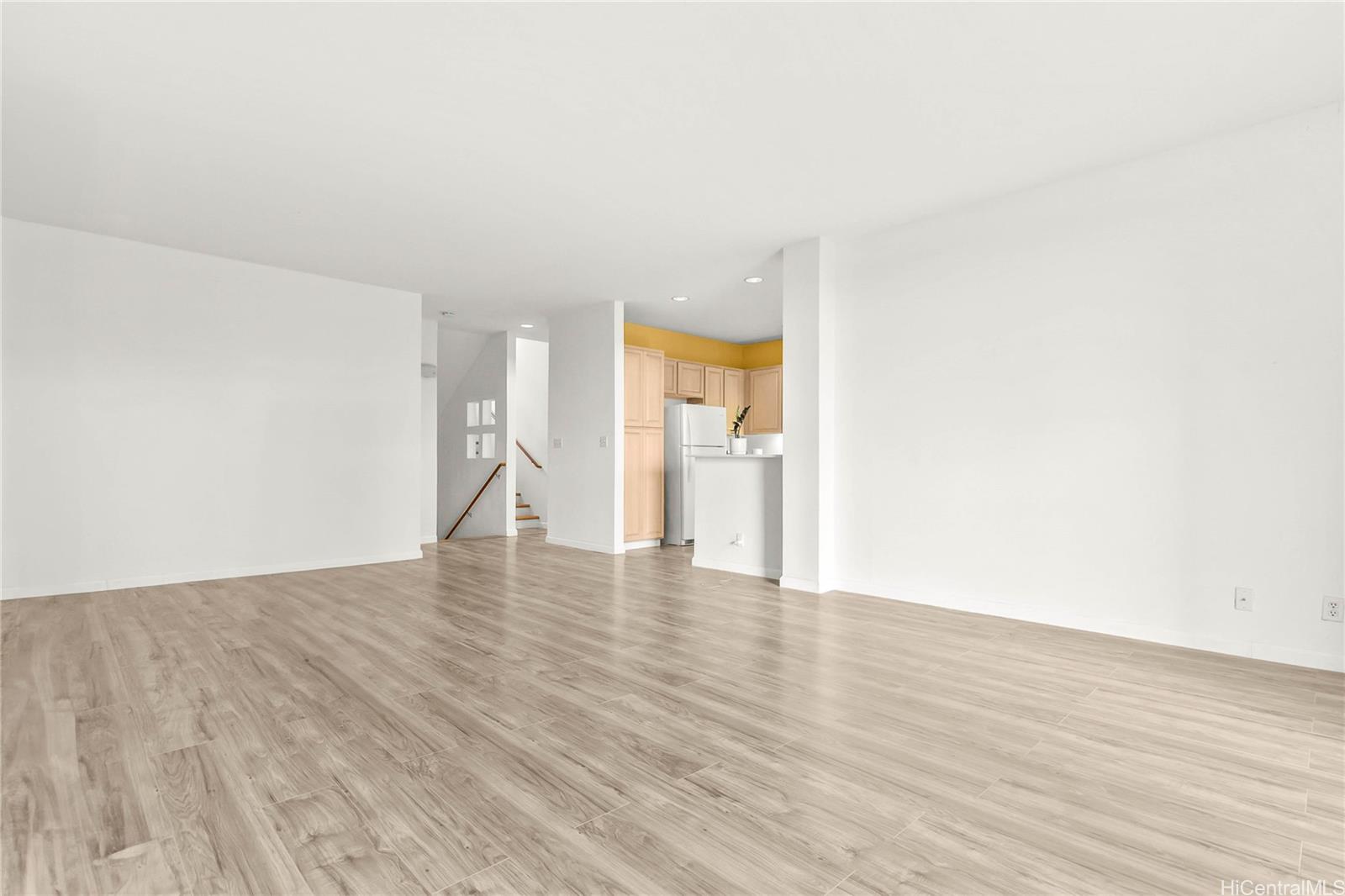 Hidden gem with green space and ocean view. Multi-level house in very good condition but the kitchen needs TLC. 1 car garage + 1 assigned parking right across from the front door. Present laminate wood floor is not permitted by the AOAO so Seller will credit Buyer for new carpet. Seller will also credit Buyer for all of the 2026 maintenance fees. Cozy pool area and exercise room.