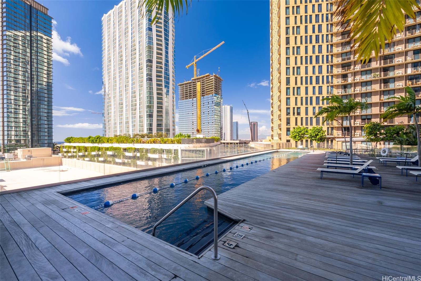 BEST VALUE & LARGEST 2-Bedroom 08-Stack Penthouse-Level Residence in Ae'o. Located on the preferred Diamond Head side, this penthouse-level home offers PH higher ceilings and a noticeably more open, premium feel. One of only a limited number of 2-bedroom residences built at 1,092 sq ft, #3908 provides meaningfully more living space than other penthouse 2BR offerings currently on the market. Floor-to-ceiling windows frame ocean, coastline, city, mountain, and sunrise views while capturing cool tradewinds and balanced natural light throughout the day. The well-designed split-bedroom layout features a contemporary kitchen, quartz countertops, and Bosch appliances, along with quality wood flooring throughout living areas and bedrooms, motorized window drapes, Toto washlets, and central A/C. Two parking stalls, featuring a secure mezzanine stall and a convenient fourth-floor stall, plus a large deeded storage room nearby. Ae'o offers resort-style amenities, pet-friendly, and direct private access to Whole Foods, all in the heart of Ward Village near Ala Moana Beach Park, shopping, dining, and entertainment.