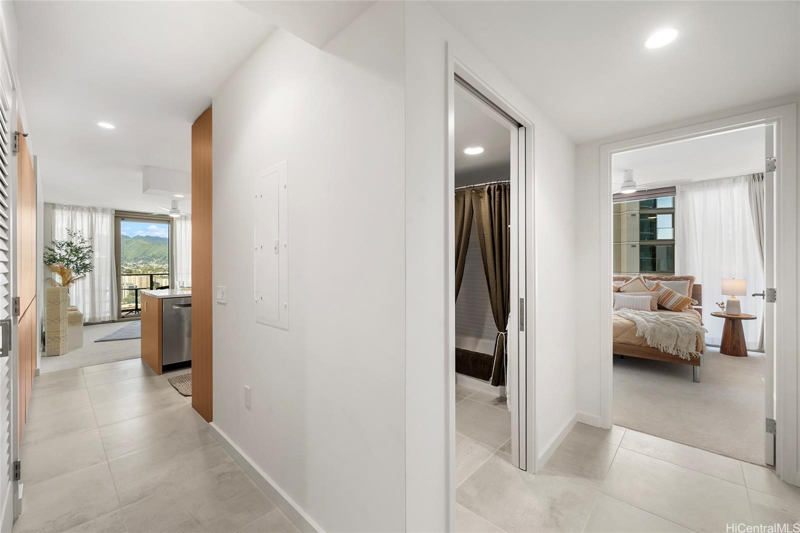 Experience elevated urban living at Sky Ala Moana West, one of Honolulu’s newest and most sought-after high-rises. This 33rd-floor corner residence features 2 bedrooms and 2 baths, showcasing sweeping city views from the living area and lanai, complemented by tranquil ocean vistas from both bedrooms. Ideally situated near Ala Moana Center, Kakaako, and Waikiki, with convenient access to hospitals and freeways. The home is thoughtfully designed with sleek modern finishes and premium stainless steel Bosch appliances. Residents enjoy an exceptional suite of resort-style amenities, including a fitness center, sauna, pool, BBQ areas, recreation spaces, dog park, and more. Discover a sophisticated island lifestyle in the heart of Honolulu.