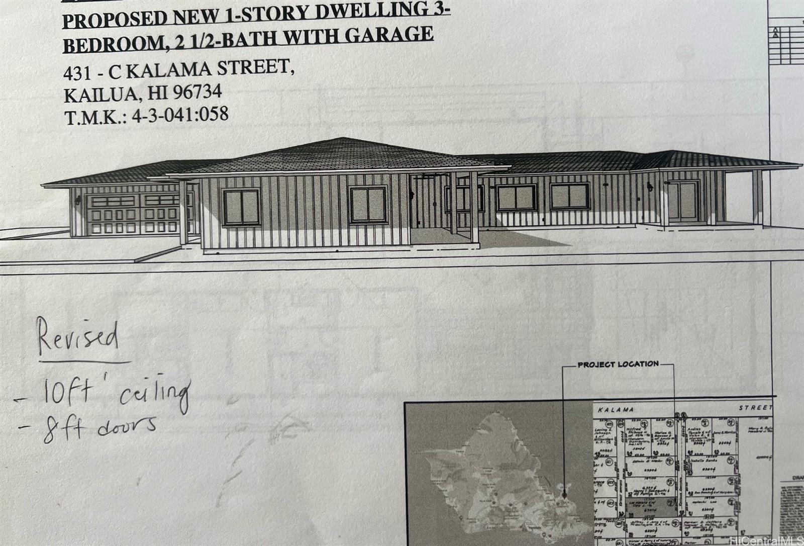 Have you been looking for just the right property and haven't found it yet? Take advantage of this UNIQUE & RARE opportunity to build a custom home with a the finishes you desire. This listing is for a vacant 6250 sqft. lot in the heart of Kailua within close proximity to Kailua Beach. It comes with DPP APPROVED PLANS for a single family residence consisting of a 3 bdrm, 2.5 bath, enclosed garage, driveway, and multiple covered lanais to enjoy the outdoor spaces. The custom home design seamlessly blends the Kailua Beach community vibes with luxury features such as 9 foot ceilings and custom doors to name a few highlights. The permit HAS NOT BEEN ISSUED yet, leaving you the ability to revise plans if desired without having to create a new permit which currently is taking WELL OVER a year to obtain. Lot does offer ADU potential for the Akamai Buyer. Renderings showing here are for general reference. Plans will be included for review during escrow and delivered at closing. Call your Contractor, skip those long lines at DPP and create a stellar home. Property has 2 deeded shared access roads off Kalama St. Please do not go on property without an appointment.