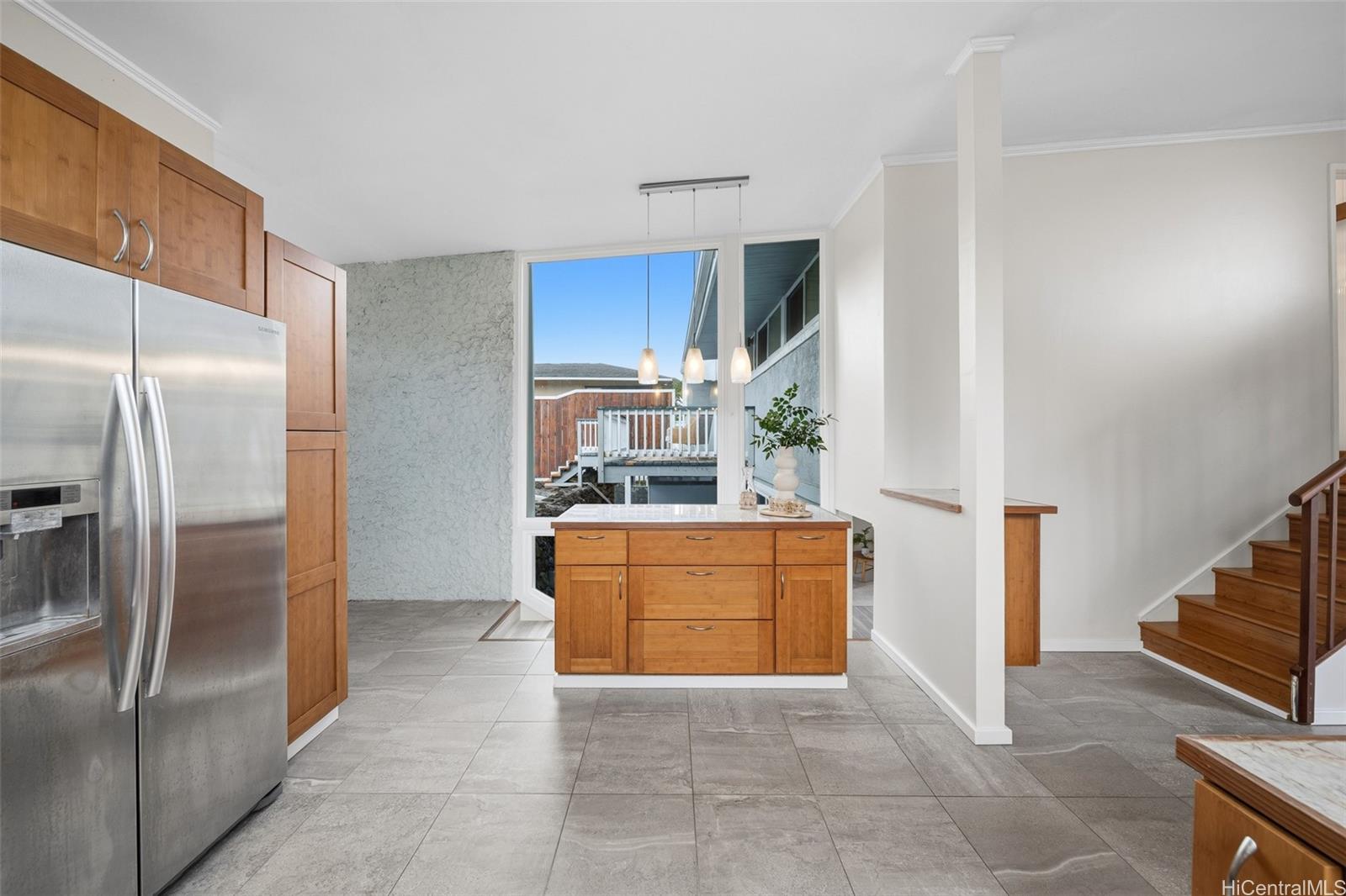 Tucked in Lulani Ocean, perched above Kaneohe Bay, this mid-century modern gem blends islander living with timeless design. Not your cookie-cutter home, it embodies character, flow, and spaces that just feel good. The kitchen and baths have been updated over the years and the indoor/outdoor connection makes entertaining effortless. Multiple lanais open to cool breezes, mountain views, and a lush and expansive 10,710 sq ft lot that might be perfect for that ADU you've dreamt about. Downstairs, a separate living area with its own entrance offers flexibility for extended living or creative space. Lounge by the pool, take in the Koolau's, or launch your kayak from nearby Laenani Neighborhood Park. Two-car garage plus extra parking and generous storage make this one both functional and fun. A true coastal lifestyle, without the oceanfront price tag.