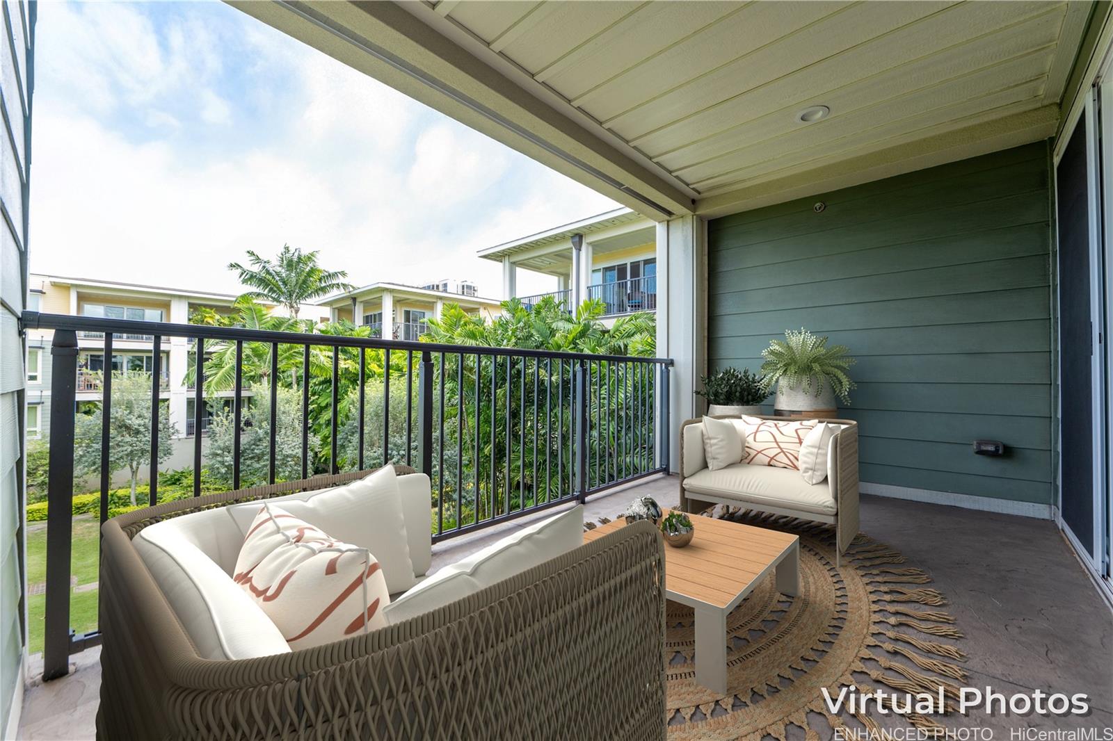 Ka Malanai at Kailua offers quintessential "modern island living" in the heart of Kailua, where everything is truly at your fingertips—Kailua Beach, shopping, fine dining, fitness centers, yoga studios, and more. This peaceful and beautifully upgraded Aoloa Plan A1 residence features tile flooring throughout the main living area with plush carpeting in the bedrooms. Lightly used as a second home by its original owners, the unit has been meticulously maintained and is in excellent condition. Features include fresh interior paint, vertical blinds, classic plantation shutters providing flexibility for light control and privacy, and upscale appliances. The home has been professionally cleaned and is move-in ready. Enjoy the coolness of central air conditioning, a comfortable open-concept floor plan, spacious covered lanai overlooking the lush, professionally landscaped grounds—ideal for relaxing or entertaining. There are two assigned covered parking spaces. Some photos are virtually staged.