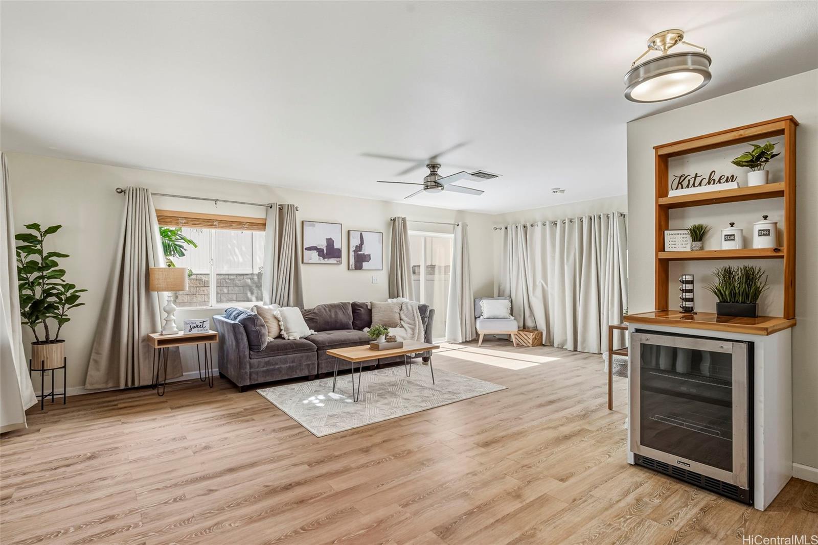 Best priced 3-bedroom home in all of Sea Country. Don’t wait, this one won’t last. This well-maintained two-story home offers comfort, convenience, and island living. Features include central AC, abundant natural light, a large sliding door opening to a private fenced yard, ceiling fans in every room, stainless steel appliances, and washer and dryer. Parking is effortless with an attached enclosed garage, a second parking space, and guest stalls nearby. This home sits on the corner with no direct neighbor on one side and an elevated rear neighbor making the home and yard feel extra private. Conveniently located minutes from the community pool with BBQ and gathering area, park with playground and courts, general store, and bus stops. Close to popular West Side spots like Pillbox Hike, Ma‘ili Beach, and many local eateries and beaches. A major bonus: assumable VA loan with a 3.88% interest rate, a huge advantage in today’s market. Priced to sell and unmatched in value, this is currently the lowest priced 3-bedroom in all of Sea Country. Act fast before it's gone!
