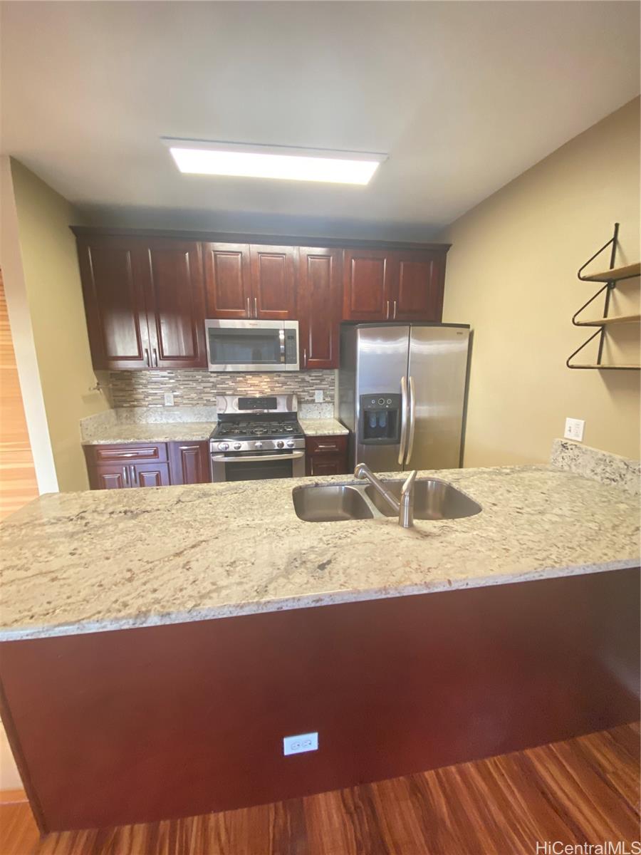 Welcome Home Hawaii proudly represents this island style living located in the heart of Ewa Beach, this stunning 2 bedrooms, 2 bathrooms, with an open lanai area great for entertaining. This well maintained upstairs townhome boasts modern amenities, including a fully-equipped kitchen with stainless steel appliances, a gas range, granite countertops, and a full size front loader washer/dryer. Come see the Palm Court community and enjoy the refreshing swimming pool and BBQ area with lots of guest parking in a secured gated community. With convenient access to H-1 and nearby shops, restaurants, parks, schools, and entertainment options. This townhome is perfect and ready to move in. Don't miss this amazing opportunity to own a piece of Hawaii-Schedule your showing today!