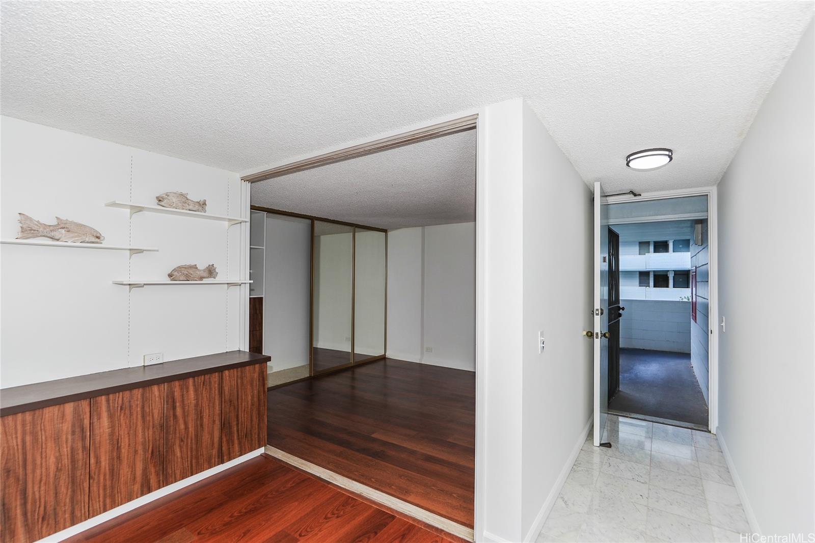 ヌアヌの静かでクールなコミュニティ、クナワイ・テラスにひっそりと佇む、魅力的な1ベッドルーム、1バスルームのコンドミニアム。快適さと利便性が完璧に融合しています。自然光がたっぷりと差し込むこのユニットは、リビング、キッチン、ベッドルームが一体となった開放的なレイアウトが特徴です。大きなスライドドアを開けると、シャッター付きのラナイがあり、鯉の泳ぐ池と、かつて古代ハワイの人々が癒しの場としていた歴史あるクナワイ・スプリングスの穏やかな景色をお楽しみいただけます。レイアウトは柔軟性に富み、スライドドアで簡単に寝室を仕切ってプライバシーを確保できます。その他の特徴としては、ビルトインの棚、新型スタッキング式洗濯機と乾燥機、ゲート付きガレージの専用駐車スペース1台分などがあります。敷地内には、プール、バーベキューエリア、シーティングスペース、鯉の泳ぐ池などのアメニティに加え、通りを挟んだ向かい側にはバスケットコートとジャングルジムのある近隣公園があります。ホノルルのダウンタウン、ショッピング、レストラン、ビーチ、公園、交通機関にも近く、便利なロケーションです。初めて住宅を購入する人、投資家、または静かな住まいを求める人に最適です。