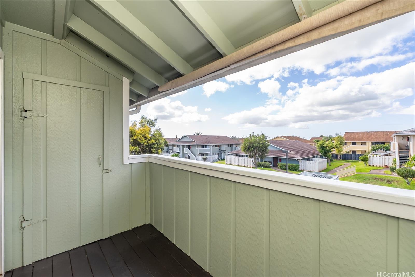 Best value in Waipio Gentry! A rare combination of space, affordability, and unbeatable convenience at Hikino in Waipio Gentry. Spacious yet affordable 2-bed, 1-bath corner unit features 717 sq. ft. of living space plus a 52 sq. ft. lanai, additional storage, updated appliances, side-by-side washer/dryer, ample nearby street parking for additional vehicles, and plenty of guest parking. Best of all, the monthly fees are low (only $0.72/sf), the Hikino is well maintained, VA approved, pet friendly (2 pets, no weight restrictions), and FULLY insured! Living in Waipio Gentry means having the best of Central Oahu at your fingertips. Conveniently located near Costco, neighborhood parks, Waikele Premium Outlets, restaurants, and quick freeway access to military bases.