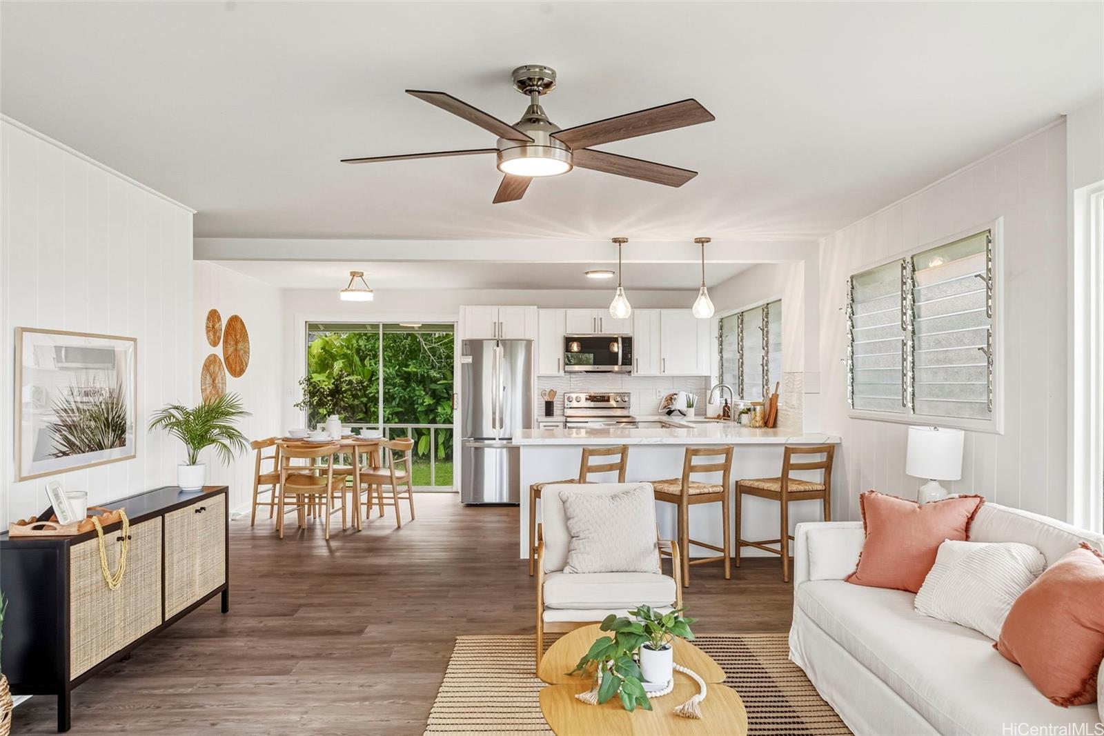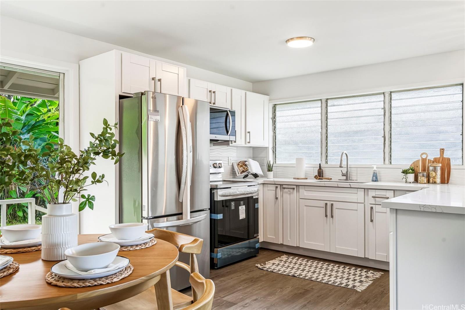 Wahiawa living in this delightful single-family home. This 3-bedroom, 2-bath residence offers a modern kitchen and baths that were upgraded this year with new cabinets vanities and appliances. The kitchen opens to the living room. The kitchen features ample cabinet space and a functional layout, new vinyl floors throughout. The entire interior and exterior has been recently painted. Outside, enjoy the spacious yard with mature landscaping-ideal for outdoor gatherings or gardening. The carport and driveway allow for 4 cars. Located close Wahiawa Town's shops, dining, Schofield Barracks and Wheeler Army Airfield. Enjoy the tranquil surroundings while having easy access to the rest of the island.
