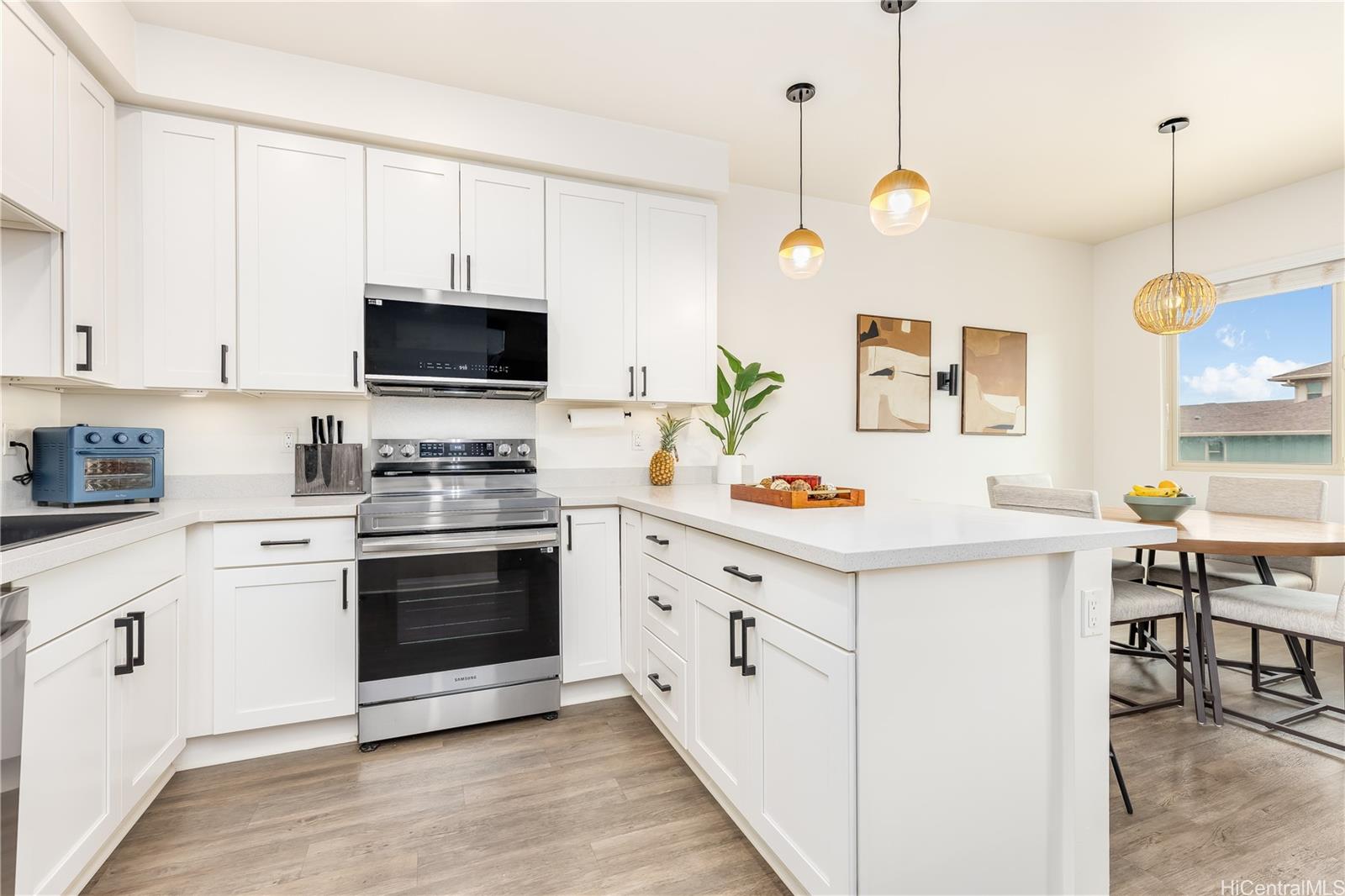 Welcome home to Kohina at Hoopili in the heart of Hoopili! This gorgeous, partially remodeled townhome includes 2 bedrooms, 2.5 baths, attached 1-car garage and 2 additional tandem parking! Located on the cool side of the building, this unit is just steps away from Festival Street, Teaspresso, Dominos, and Sage Creamery! If you hate carpet, you're going to love that this unit has gorgeous luxury vinyl planking throughout! Hardware and fixtures have been beautifully updated, and the character throughout the home is undeniable! Be a part of all that Hoopili has to offer including, but not limited to: dog parks, kiddie parks, community pool, pickleball courts, basketball and volleyball courts, local businesses, and so much more! Hoopili boasts on and off freeway access, (3) different Skyline rail stations, and is within <30 minutes from Schofield, Wheeler, Pearl Harbor and Hickam AFB. Call your favorite local Agent to schedule your private showing today! First Open House weekend, Saturday, 1/17 and Sunday, 1/18 from 2-5pm! See you there!