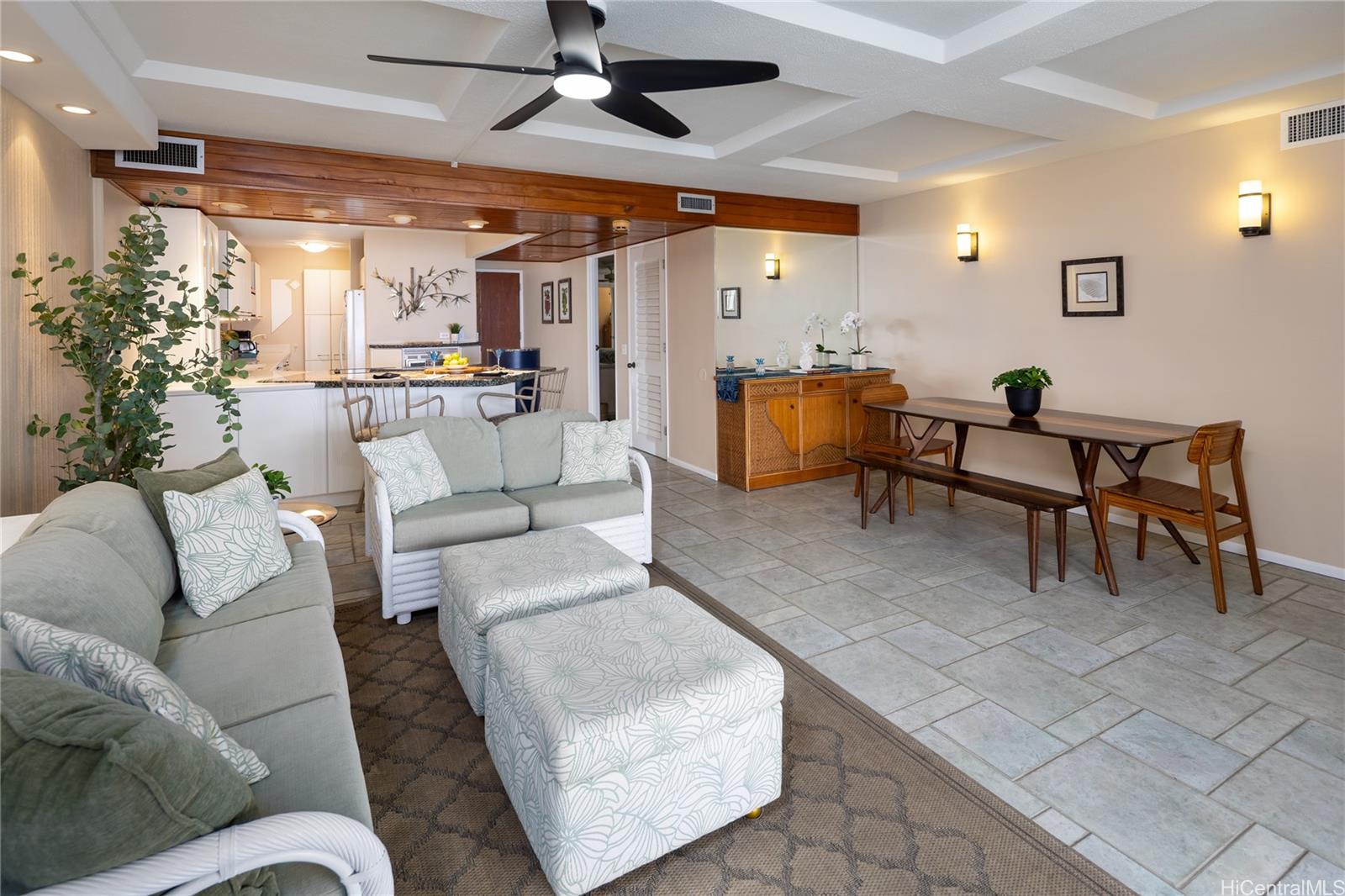 ハワイアン・プリンセスの、息を呑むようなオーシャンビューの2ベッドルーム、2バスルームコンドミニアム!16階に位置するこの快適な賃貸住宅は、1,224平方フィート(約120平方メートル)の広々としたリビングスペースで、息を呑むようなオーシャンビューと涼しい島の風を満喫できます。明るく開放的なリビングエリアは自然光がたっぷりと差し込み、プライベートなラナイへと続きます。ラナイは夕日を眺めるのに最適です。ロールダウンシェードが備わっており、プライバシーと快適性を高めます。全室にカスタムメイドのシャッターが設置されており、プライバシー、スタイル、そして住まい全体の調光がさらに向上します。メインスイートには大きなクローゼットとダブルシンクの洗面台付き専用バスルームがあり、セカンドベッドルームもオーシャンビューで、ゲスト用やホームオフィスとして最適な専用バスルームを備えています。その他の設備として、室内洗濯機/乾燥機、セキュリティ付き駐車場1台分、そして建物内のアメニティへのアクセスなどがあります。カポレイのショッピング、レストラン、エンターテイメントエリアにも近接しています。2036年にリース期限を迎える賃貸物件です。現金購入者限定。沿岸生活の素晴らしい機会です。今すぐプライベート内覧をご予約ください。