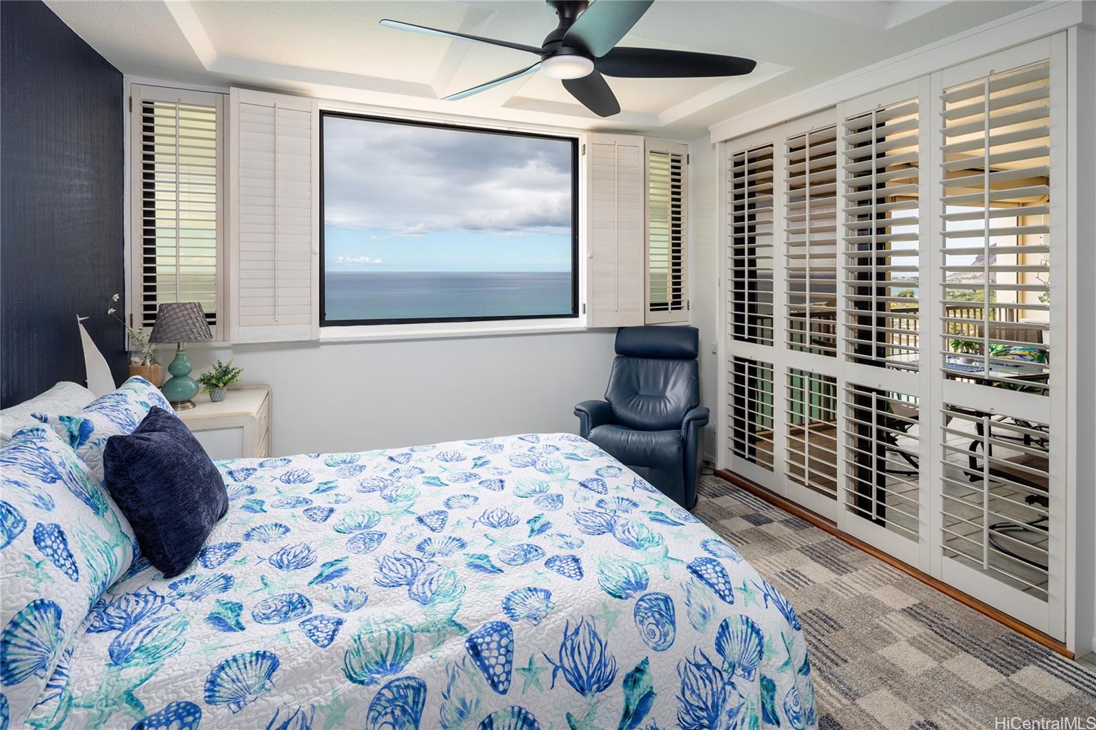 Stunning 2-bedroom, 2-bath ocean-view condo at Hawaiian Princess! Located on the 16th floor, this comfortably updated leasehold residence offers 1,224 sq. ft. of spacious living with breathtaking ocean views and cooling island breezes. The bright, open-concept living area is filled with natural light and opens to a private lanai—perfect for enjoying sunsets—featuring a roll-down shade for added protection and comfort. Custom shutters in all rooms enhance privacy, style, and light control throughout the home. The primary suite includes large closets and an en suite bath with double vanities, while the second bedroom also offers ocean views and its own en suite bath, ideal for guests or a home office. Additional features include in-unit washer/dryer, one secured parking stall, and access to building amenities. Located near Kapolei shopping, dining, and entertainment. Leasehold property with lease expiring in 2036. Cash buyers only. An exceptional opportunity for coastal living—schedule your private showing today.