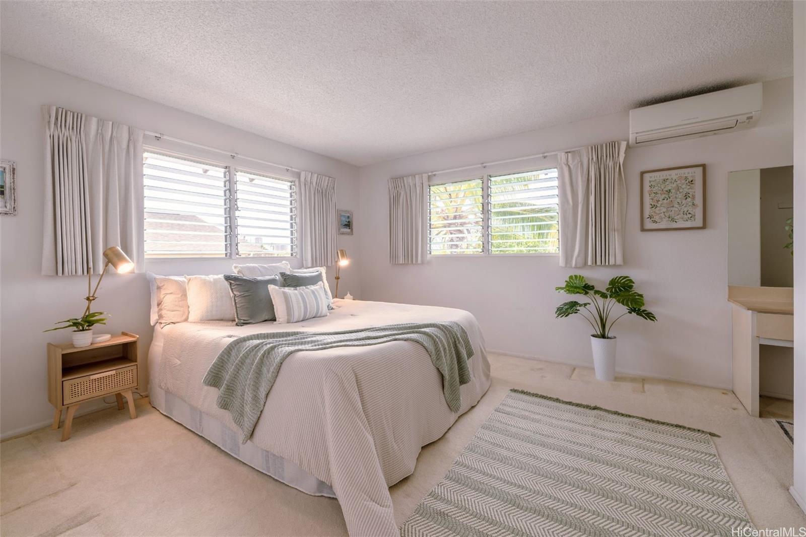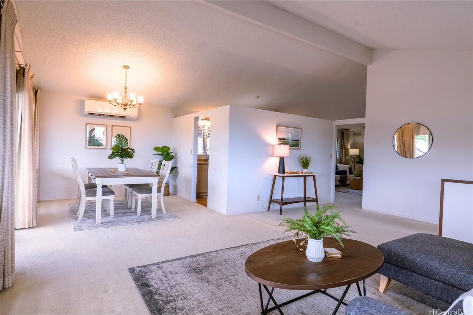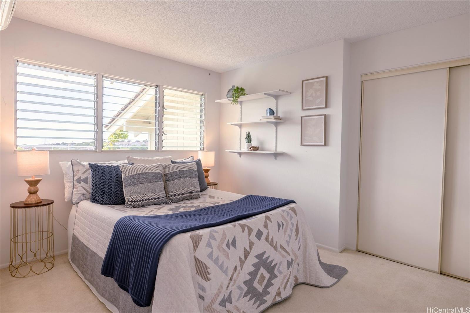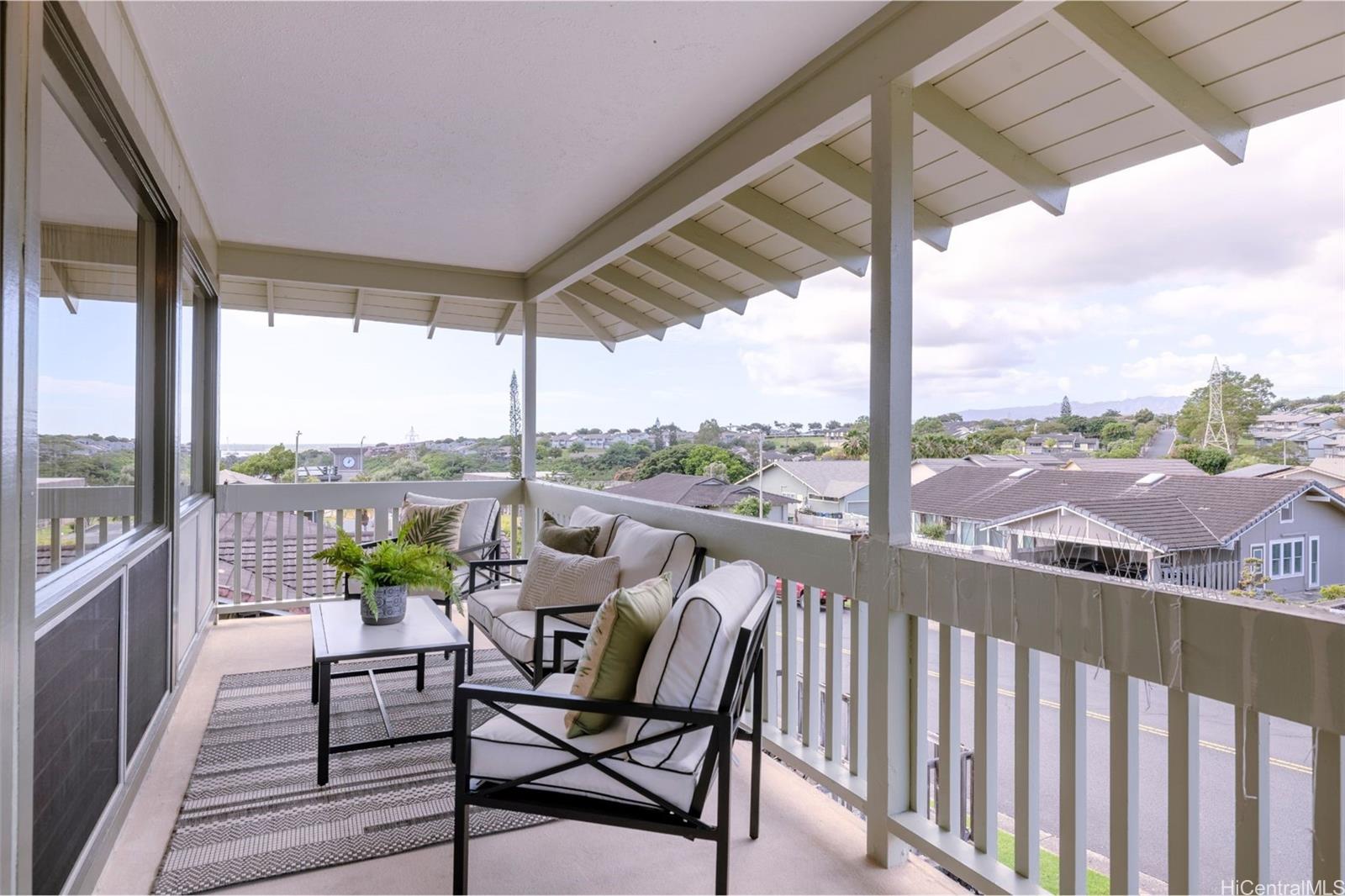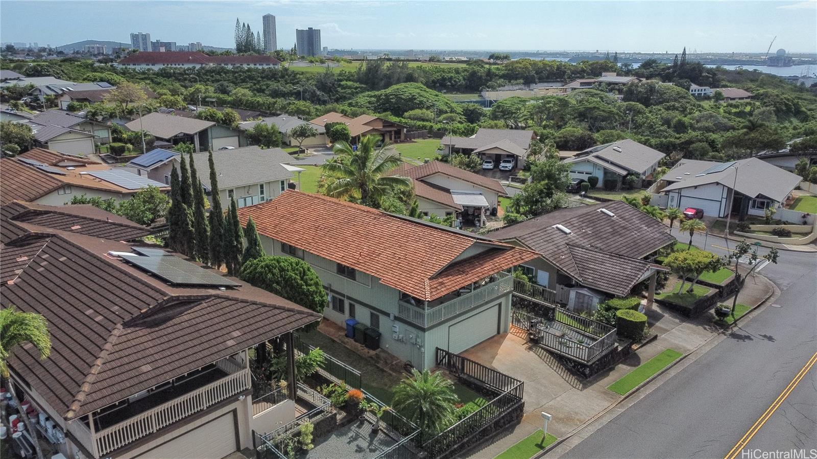 **PRICE IMPROVEMENT** IN DESIRABLE NEWTOWN ESTATES! This 2 story, split level, 4-bedroom, 3-bath residence features 5 split A/C units throughout, a fully fenced yard, and mature landscaped grounds with producing Meyer Lemon trees. The 4th bedroom is considered a "rumpus" room and is located on the bottom level of the home with an en-suite full bath. Enjoy indoor-outdoor living in a peaceful neighborhood with 16 leased photovoltaic panels, paid in full for energy efficiency. Enjoy Pearl Harbor views and sunsets from the covered lanai. A wonderful opportunity to own a thoughtfully cared-for home in an established community.