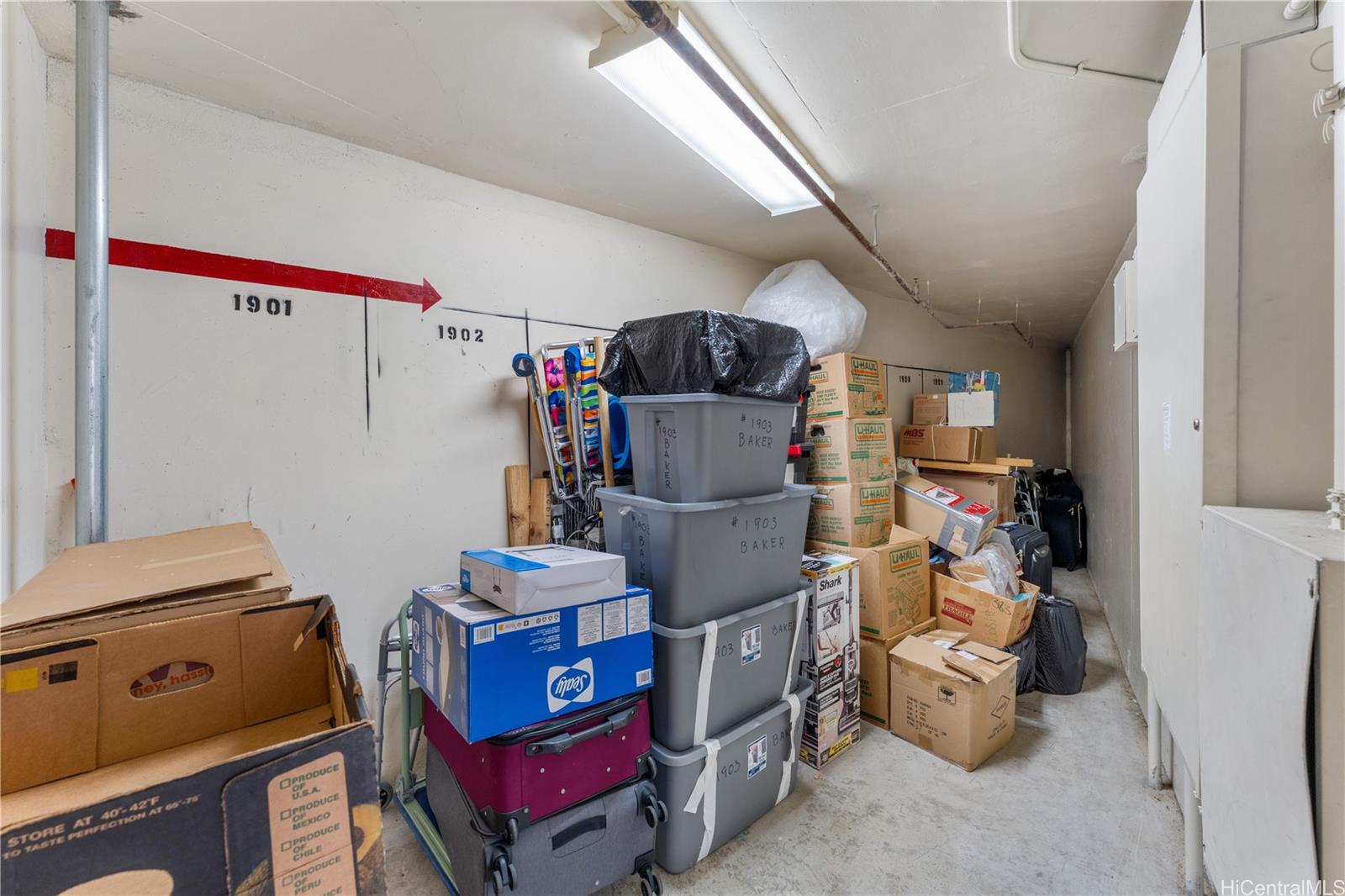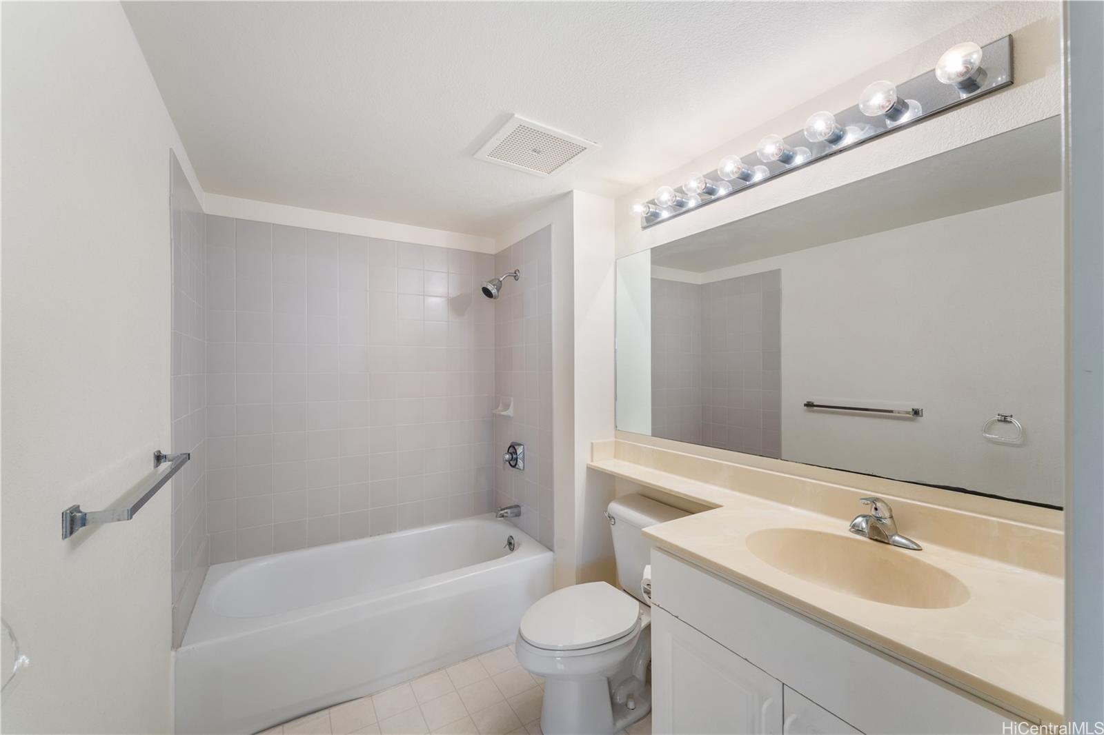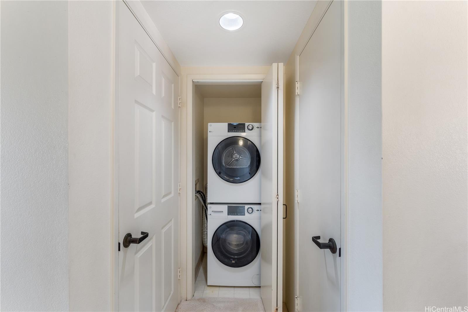 peaceful setting, and no direct afternoon sun—one of the most comfortable locations in the complex. Features include an open lanai with storage closet, stacked washer/dryer, fire sprinkler system, and two covered tandem parking stalls conveniently located near the elevator on the 3rd floor. A designated storage area on the 19th floor adds extra convenience. CCV4 is a pet-friendly building (with approval) and offers resort-style amenities including a swimming pool, BBQ's, recreation room, jogging/walking path, and car wash area. Centrally located in Salt Lake with easy access to H-1 freeway east and west, Honolulu airport, military bases, and Salt Lake Shopping Center. A great opportunity to update and customize to your taste. Unit conveyed As-Is.