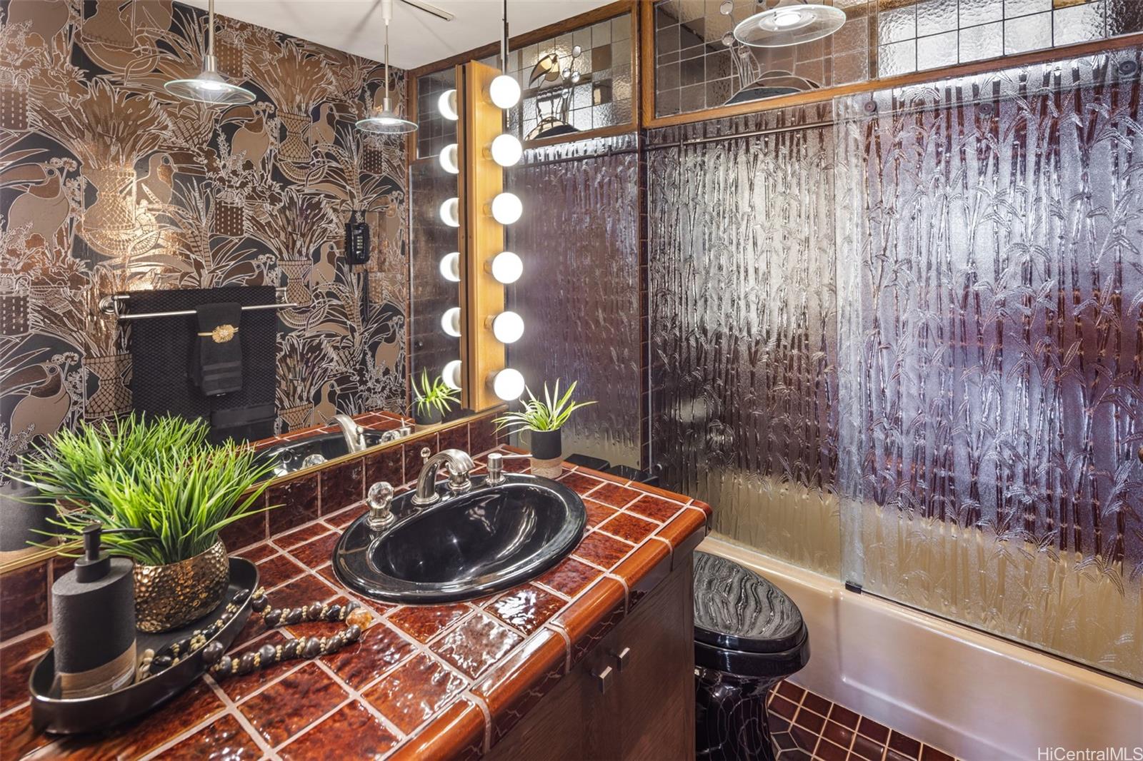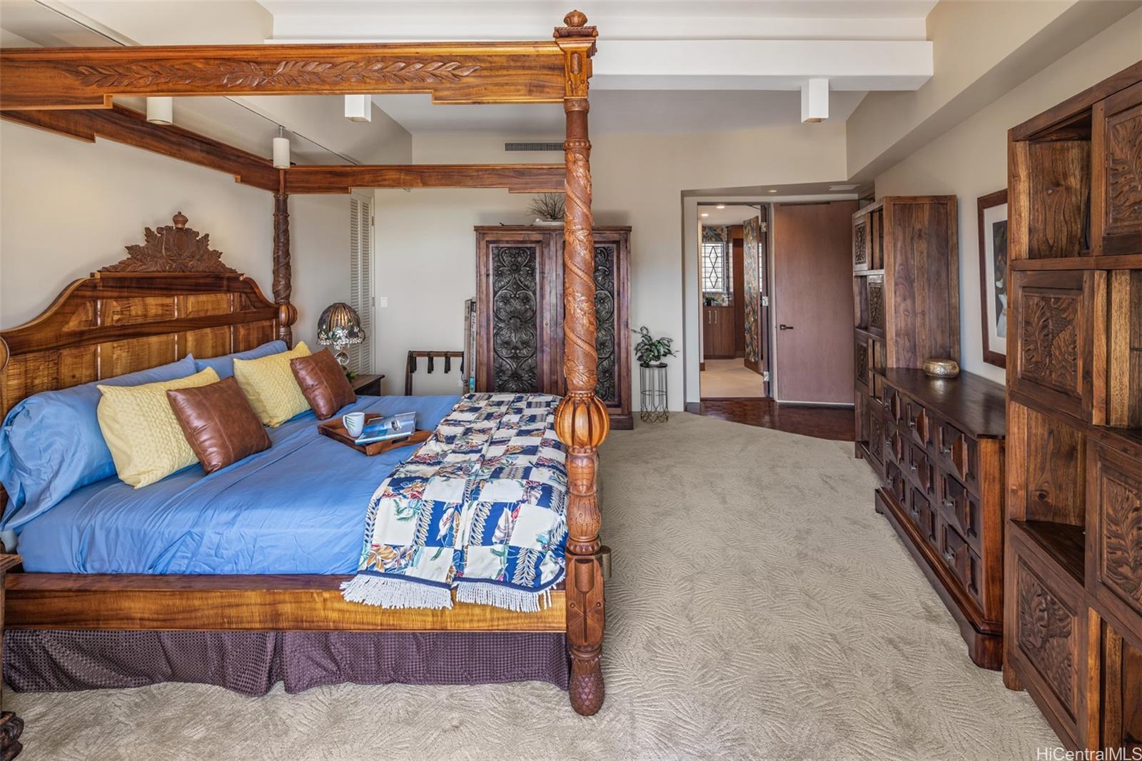 A rare, commissioned Grand Penthouse with 4 bedrooms, 3 baths, and an expansive 820 SF lanai, all on one level overlooking Waikiki. Thoughtfully remodeled, the home features curated granite and marble, custom stained glass, satin-smooth parquet floors, Koa and Eucalyptus built-ins, and designer window treatments. Island furnishings are negotiable.