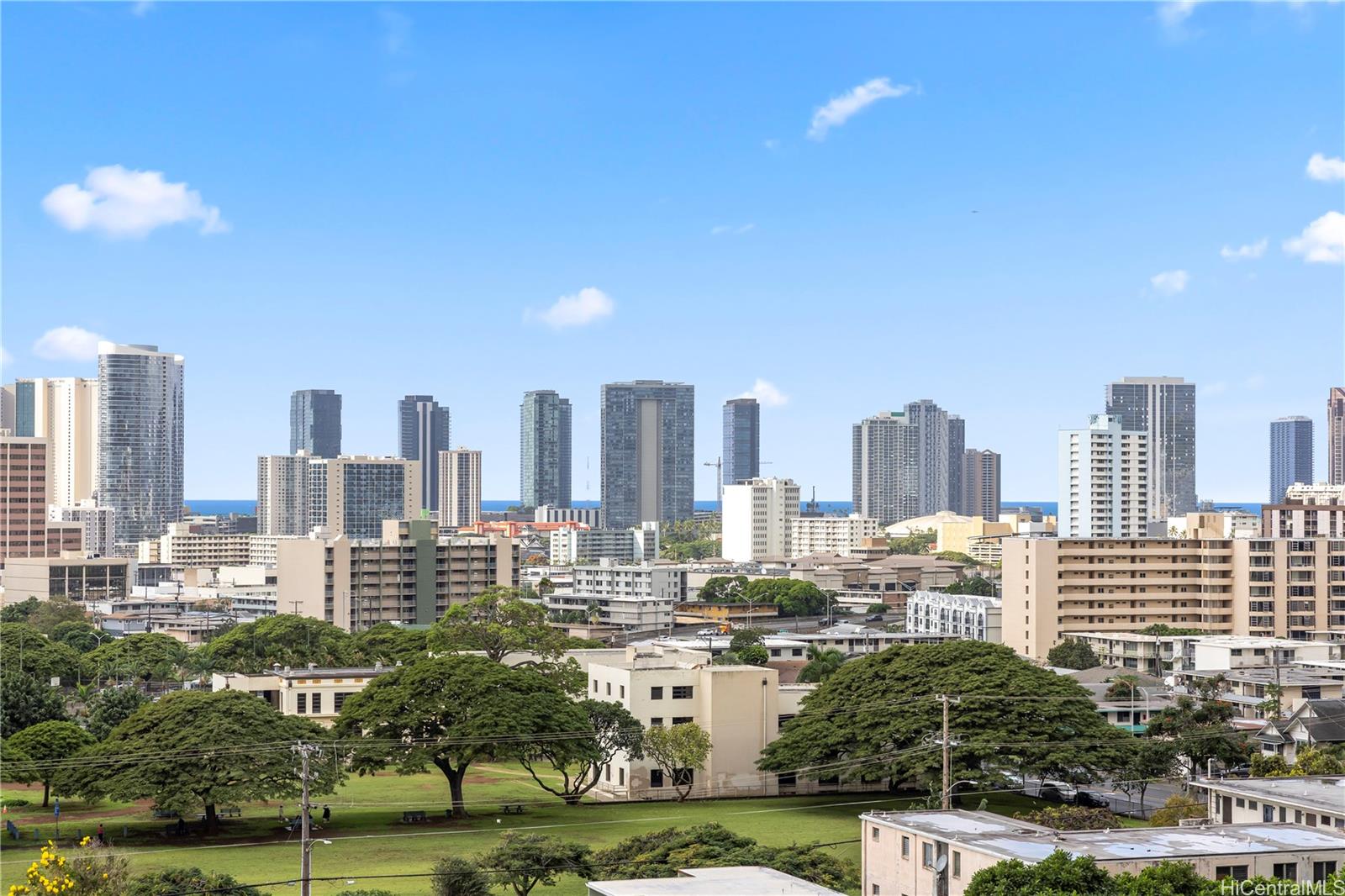 A spacious livable lanai is the focal point of this quiet apartment home in cool and green Makiki. On a higher floor of the Consulate, this island -style unit has commanding views of the city skyline, vibrant sunsets, and sparkling night vistas. The open floor plan encompasses a bright kitchen and living area perfect for intimate gatherings. Two spacious bedrooms enjoy cool breezes and lots of light. Meticulously maintained, the home shows pride of ownership. Close to Honolulu's landmarks, shopping, and dining, the building is expertly managed, and has a salt water swimming pool. Assessments for completed plumbing and elevator upgrades have been paid and the building is undergoing improvements that have been budgeted! Easy to see by appointment.